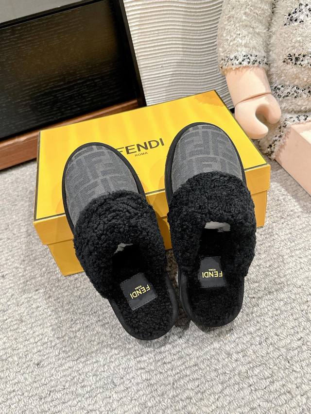 鞋面牛皮压花 双f老花面料+羊羔毛