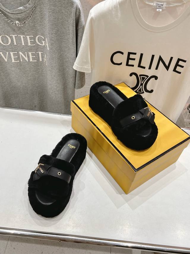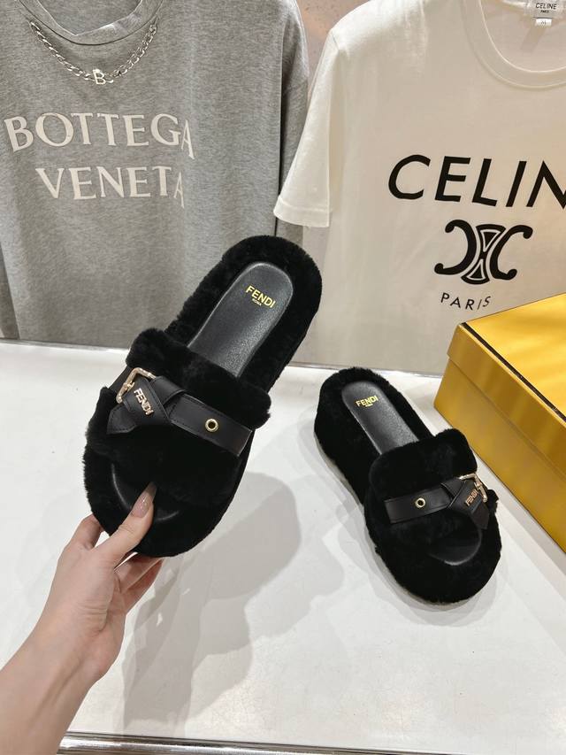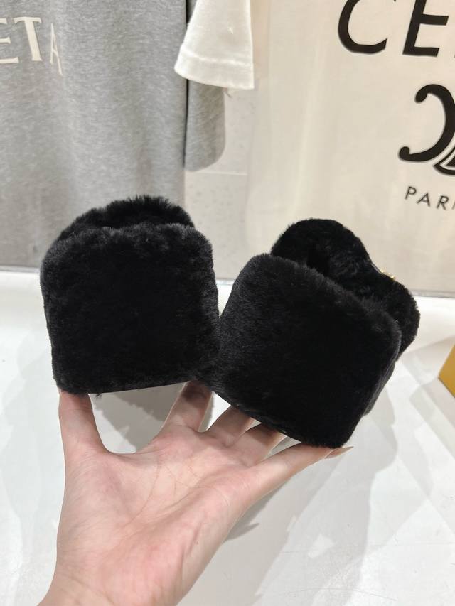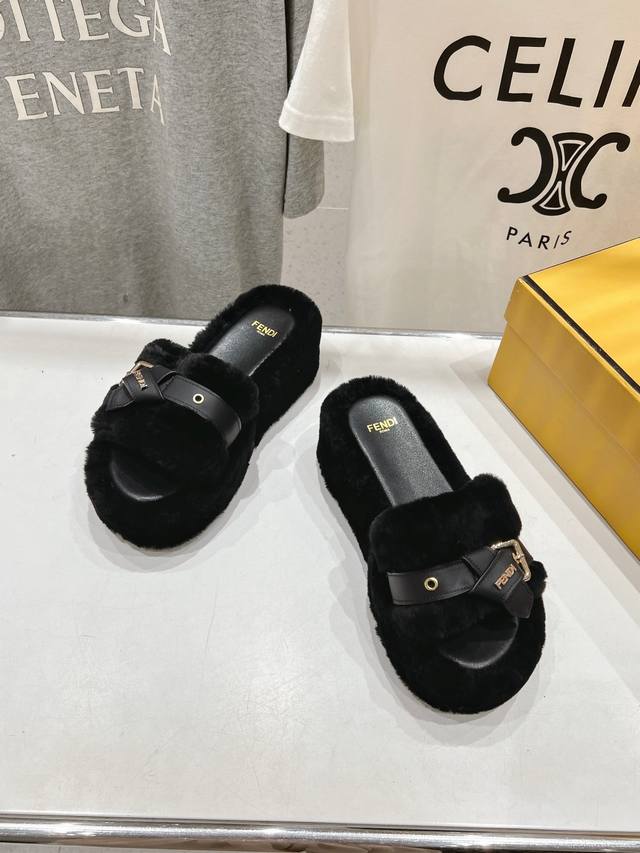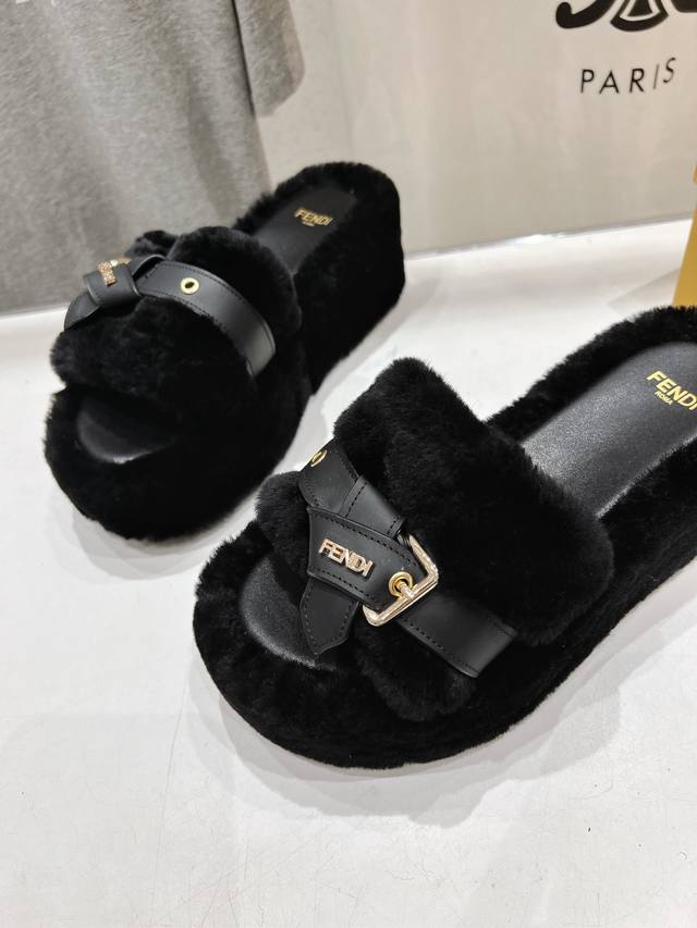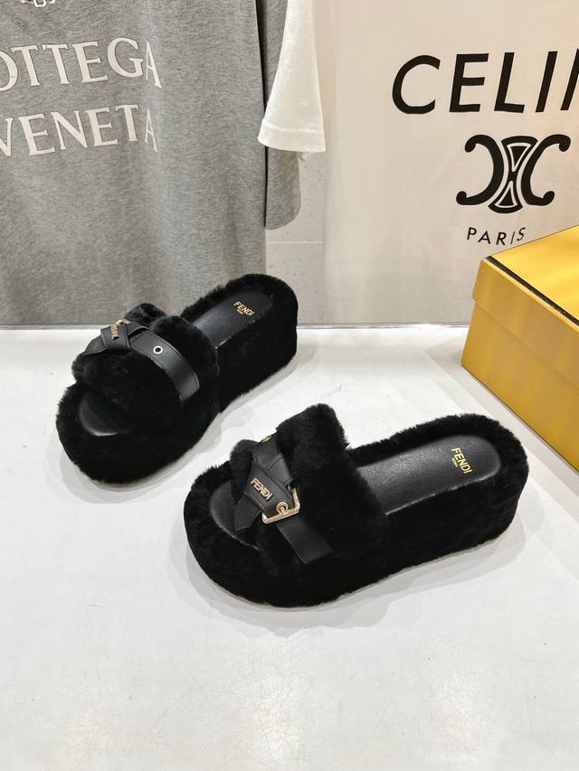 Fendi*芬迪家2024Ss秋冬新款居家坡跟毛拖,真是好玩好看好萌哒