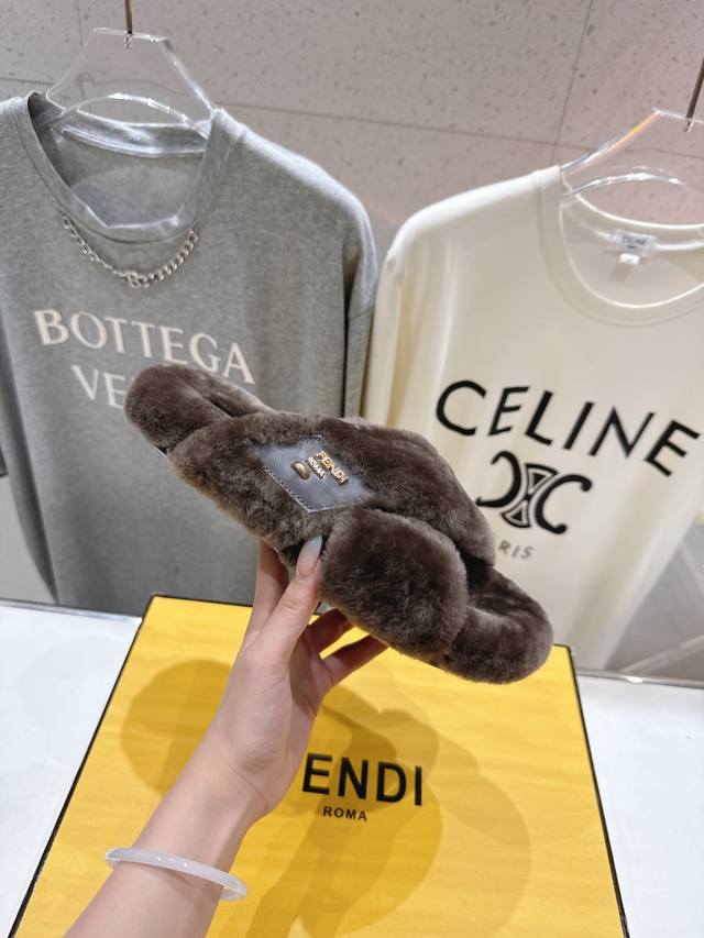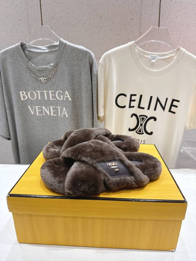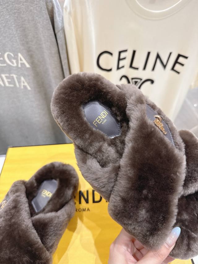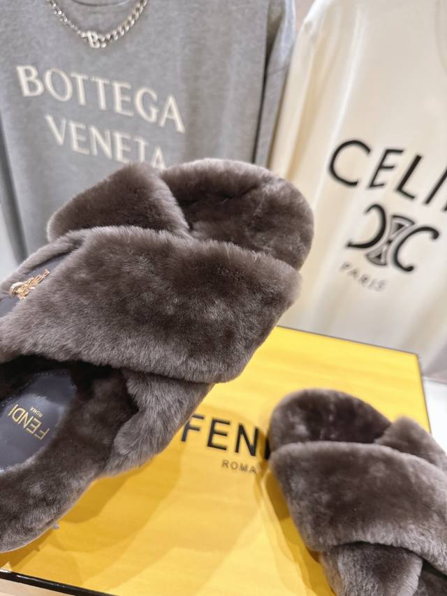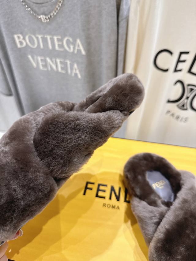 Fendi 芬迪F013 2025Ss秋冬新款专柜原版复刻平底毛毛拖 羊羔毛,原版品质