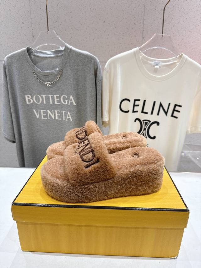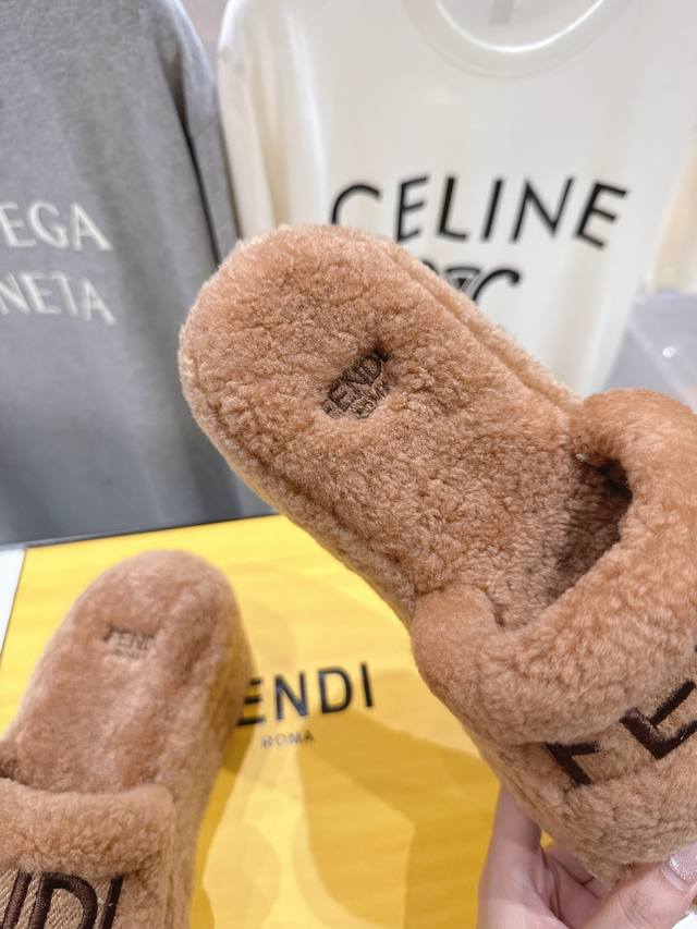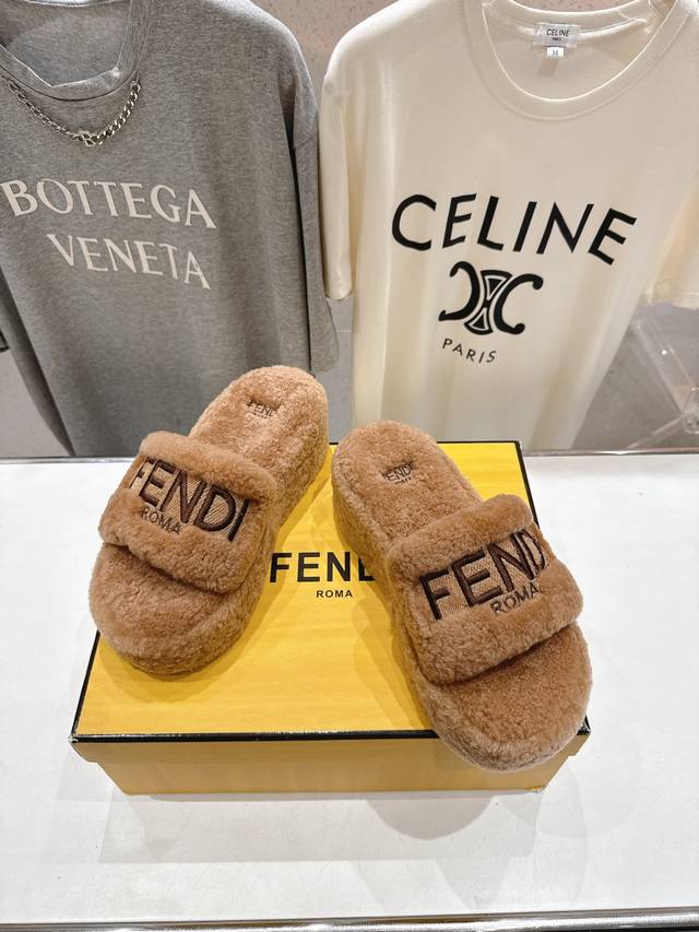 Fendi 芬迪F013 2025Ss秋冬新款居家坡跟毛拖,真是好看好萌哒