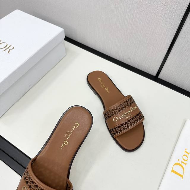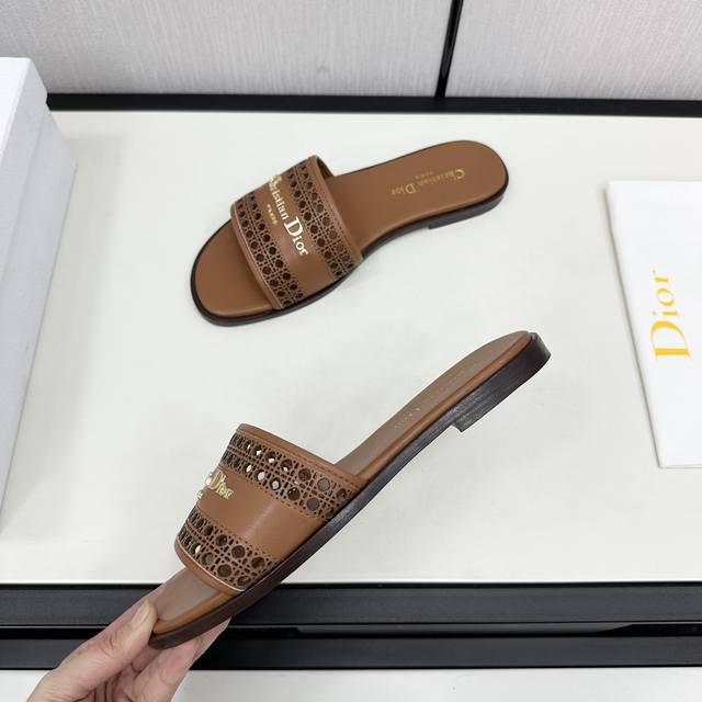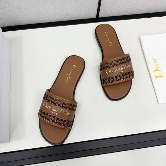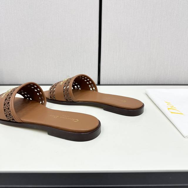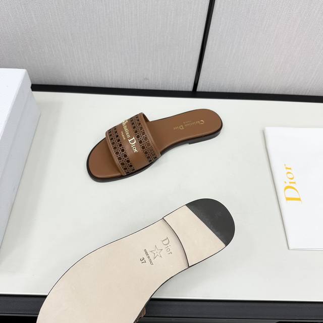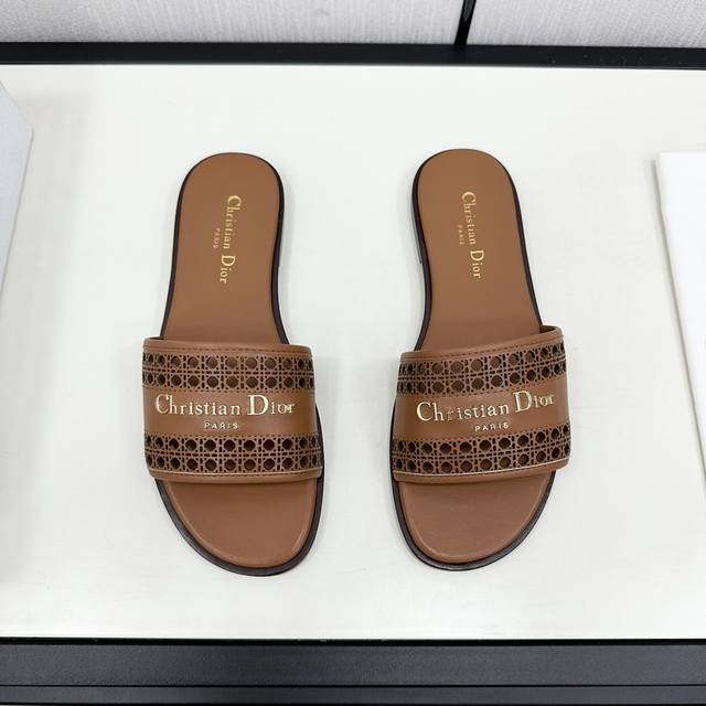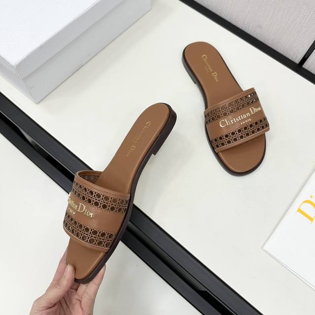 / d家2024 Dway 春夏新款一字拖拼色女鞋 Cd字母Logo立体镂空平底凉鞋 市面顶级版本 材质:鞋面原版一致高温水溶棉质电绣羊皮+水染羊皮内里+意大利真皮