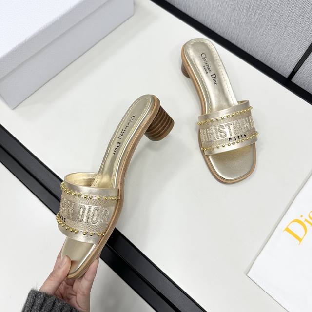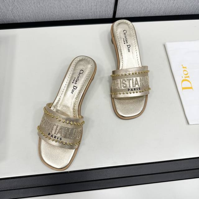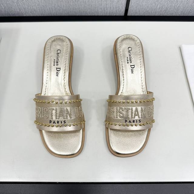 dway 春夏新款一字拖拼色女鞋 Cd字母Logo立体镂空平底凉鞋 市面顶级版本