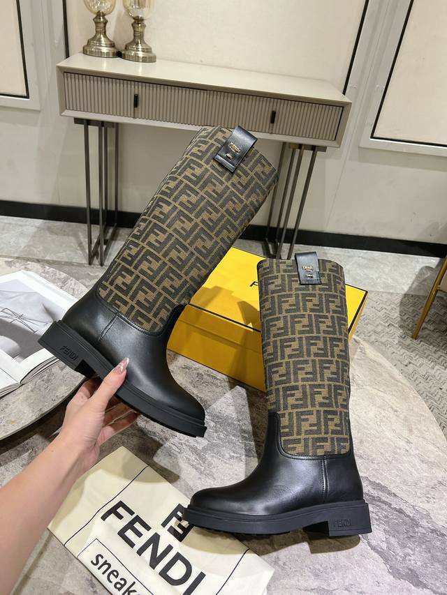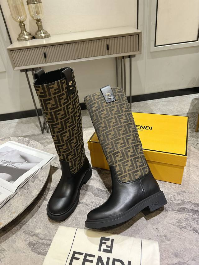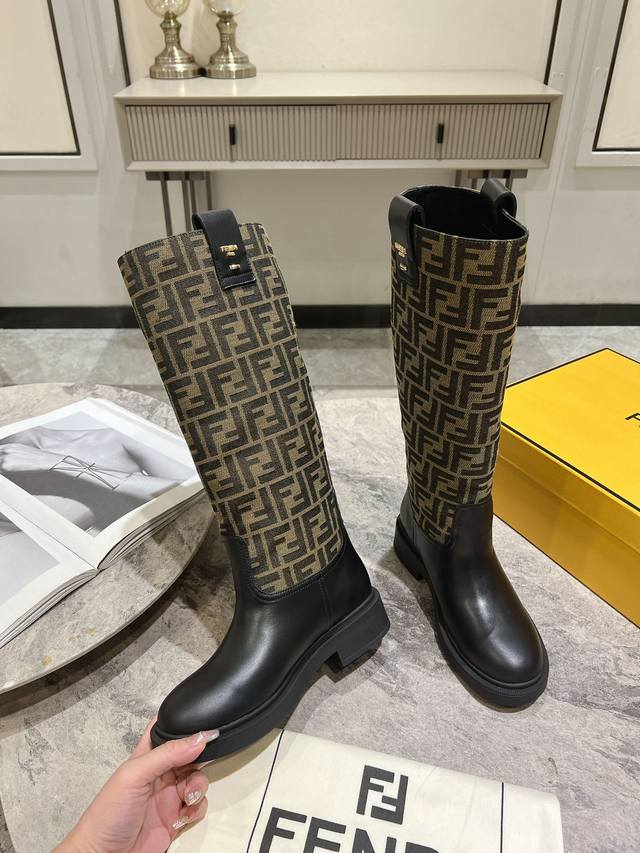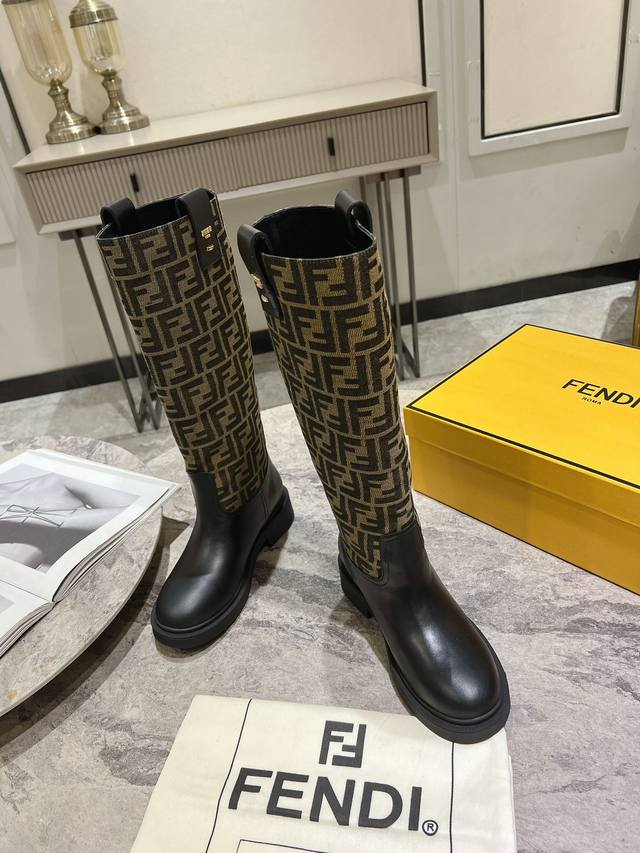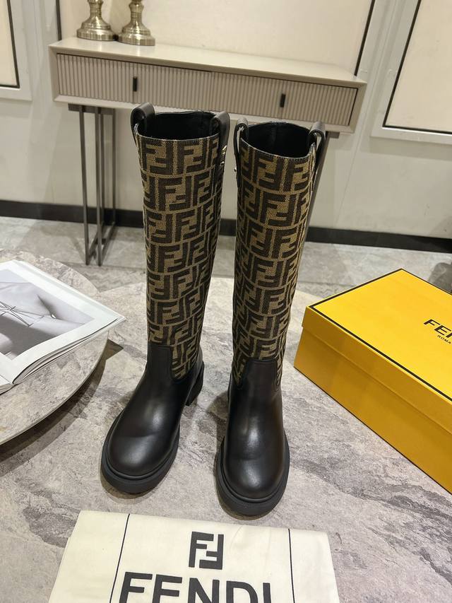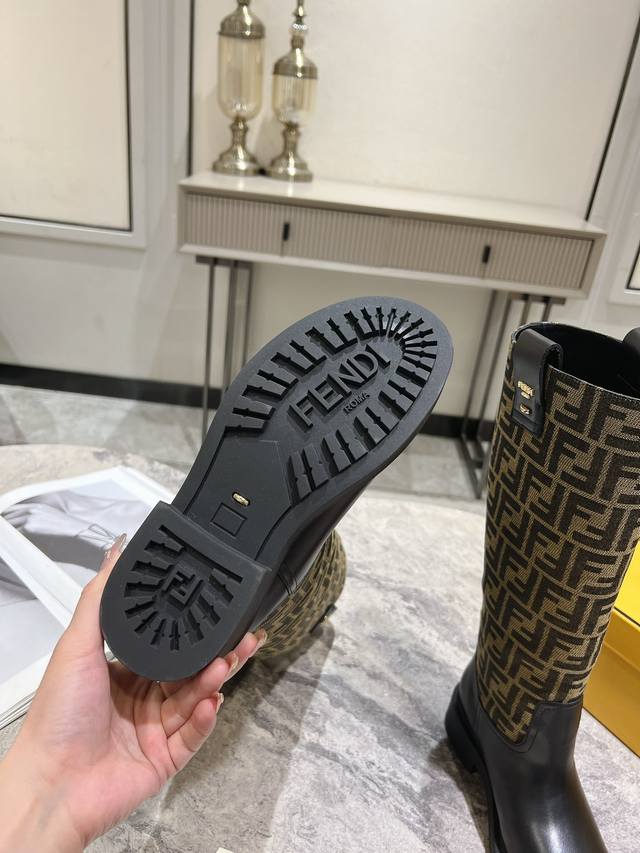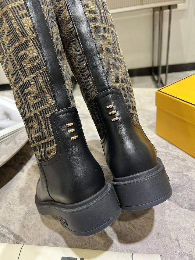 Fendi芬迪秋冬新款长筒靴 老花靴 也太好穿了 超级显腿直 搭配老花针织真的还蛮时髦,外搭短款的飞行夹克# 无拉链设计更加美观
