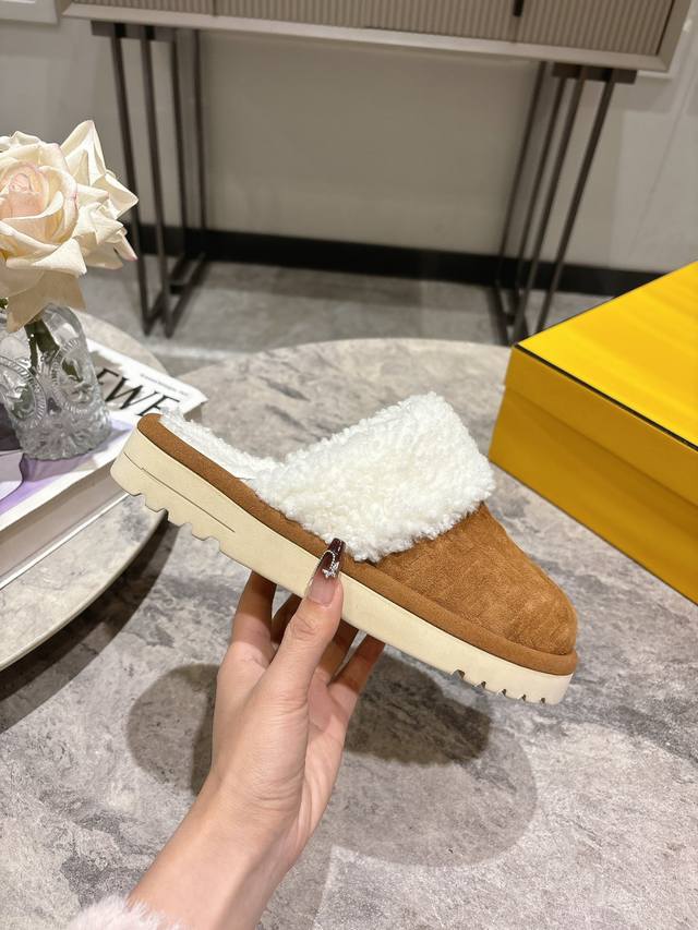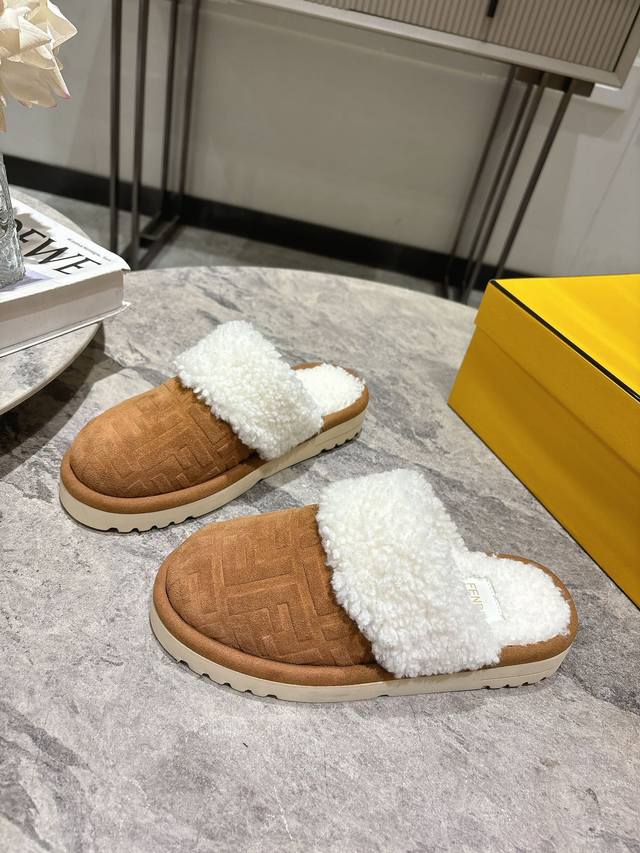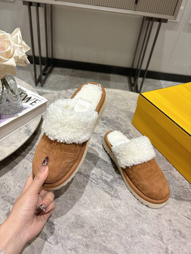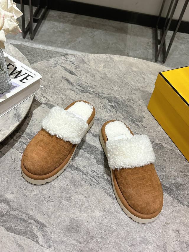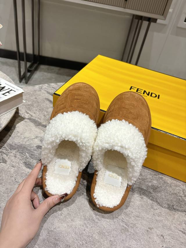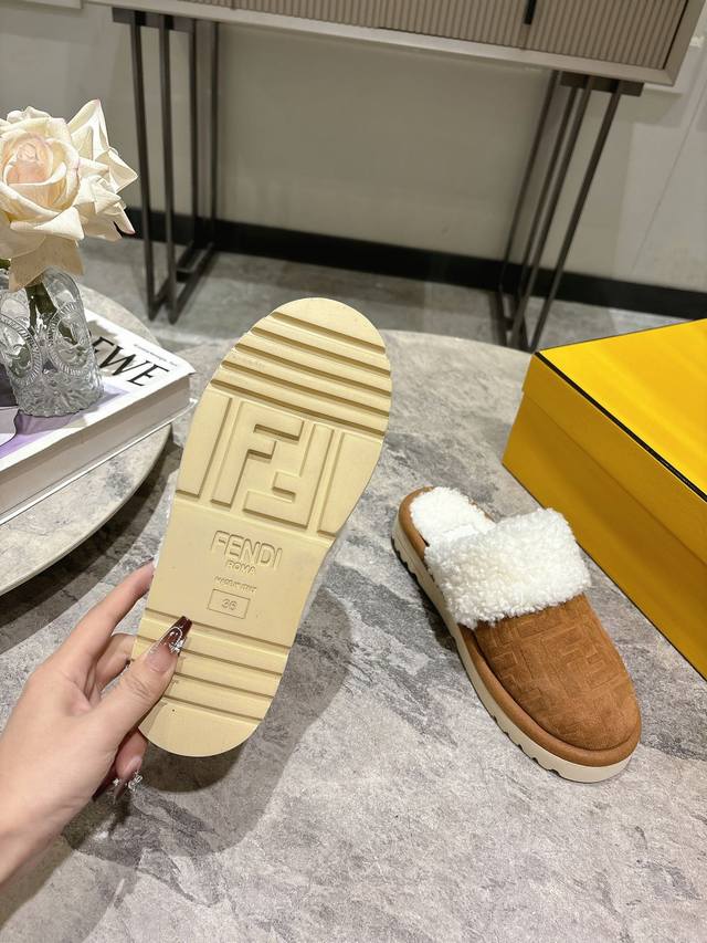 Fendi芬迪秋冬最新款毛拖 这款拖鞋今年非常爆,Ff元素搭配非常时尚 超酷个性非常强!潮派炸街!为数不多的超大牌毛拖 高级级感满满 各大网红明星同款!冬季南方