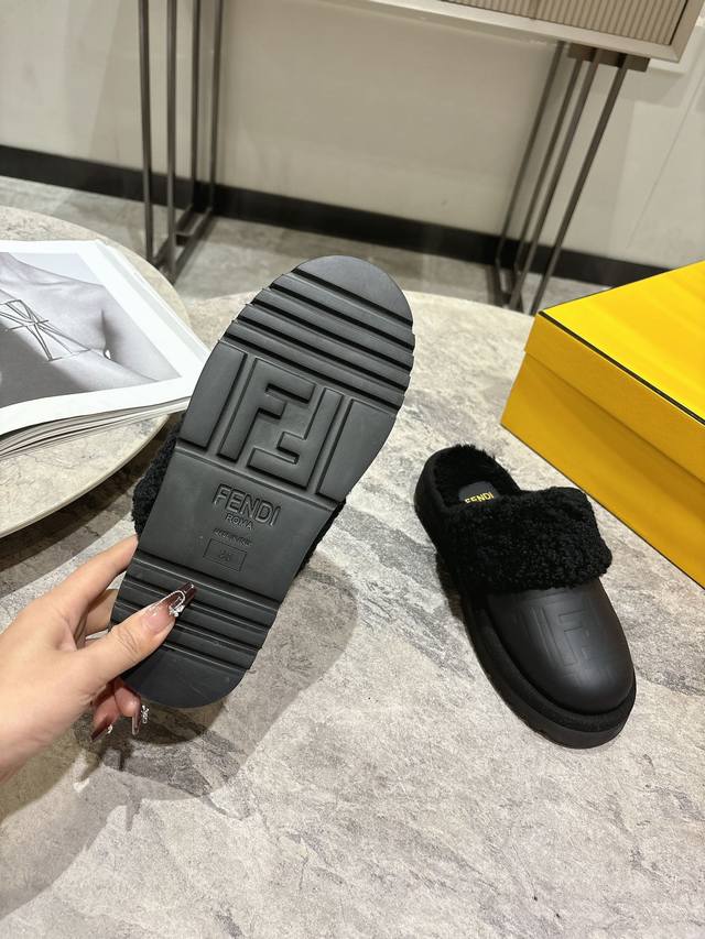 Fendi芬迪秋冬最新款毛拖 这款拖鞋今年非常爆,Ff元素搭配非常时尚 超酷个性非常强!潮派炸街!为数不多的超大牌毛拖 高级级感满满 各大网红明星同款!冬季南方小土豆必备爆款