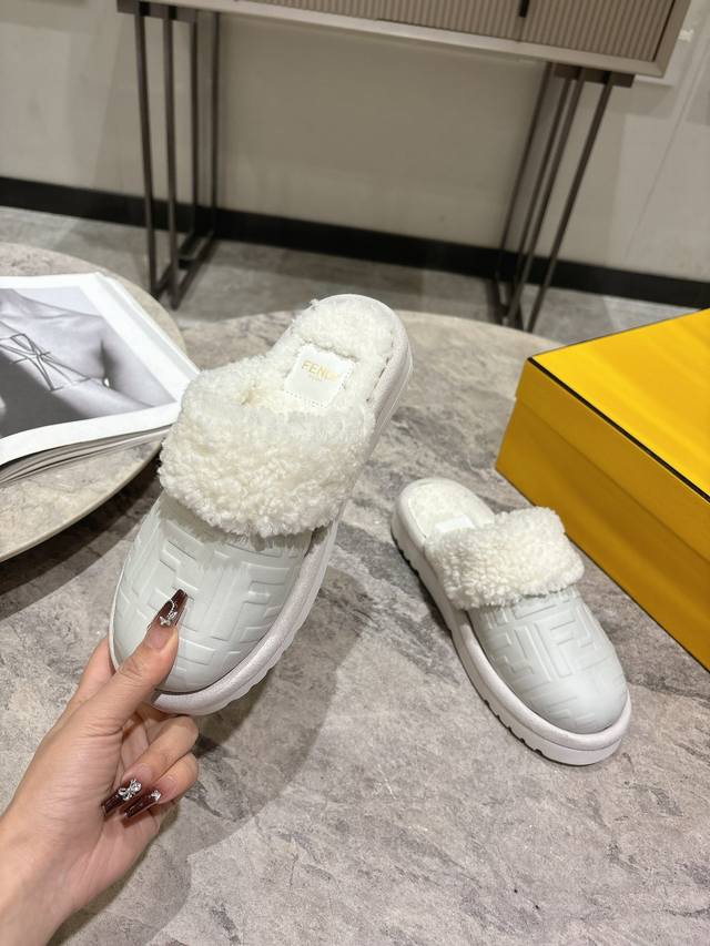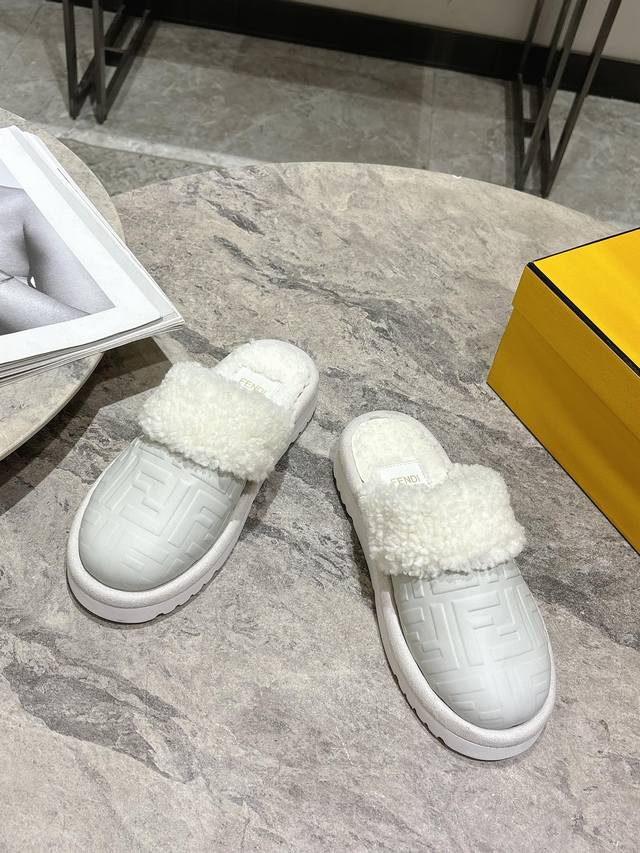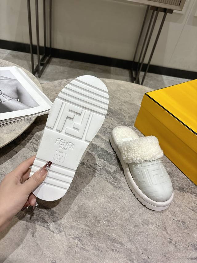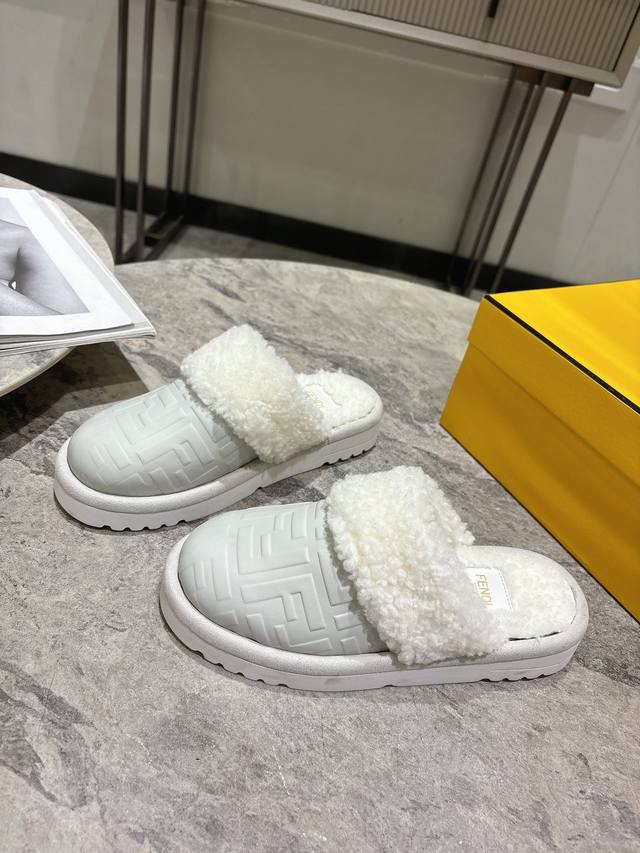 Fendi芬迪秋冬最新款毛拖 这款拖鞋今年非常爆,Ff元素搭配非常时尚 超酷个性非常强!潮派炸街!为数不多的超大牌毛拖 高级级感满满 各大网红明星同款!冬季南方小土豆必备爆款