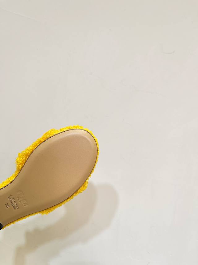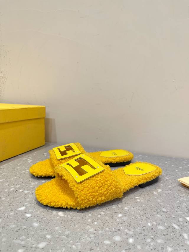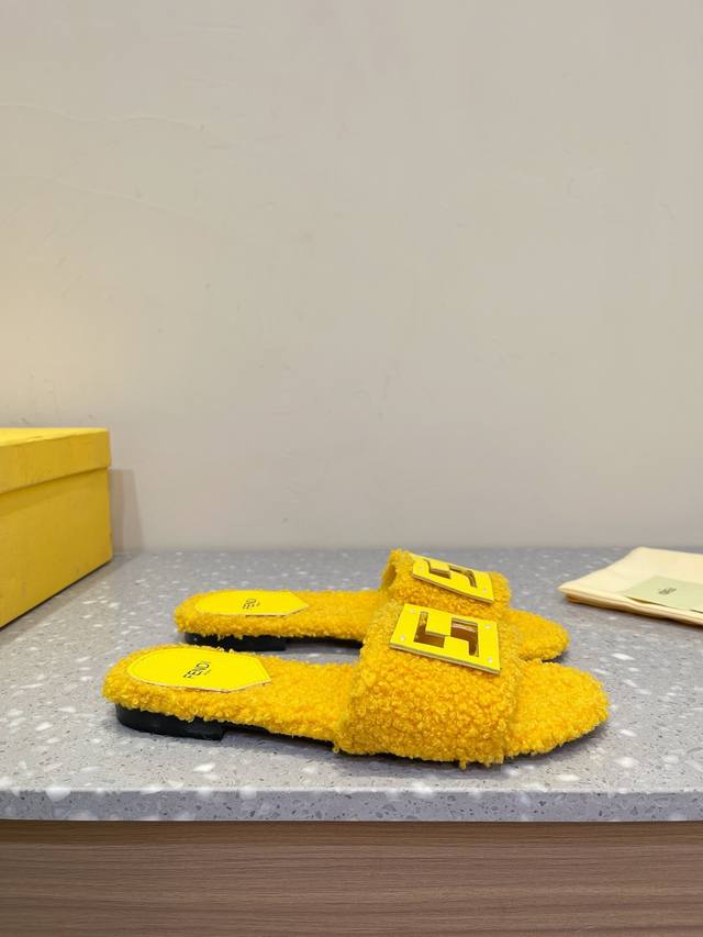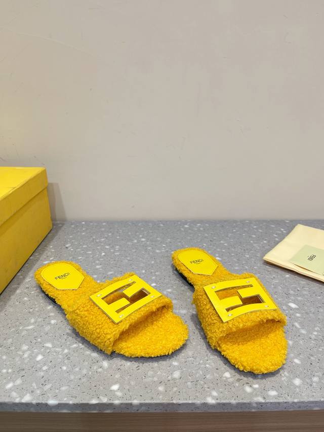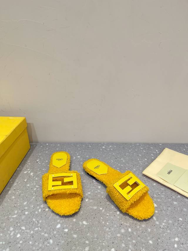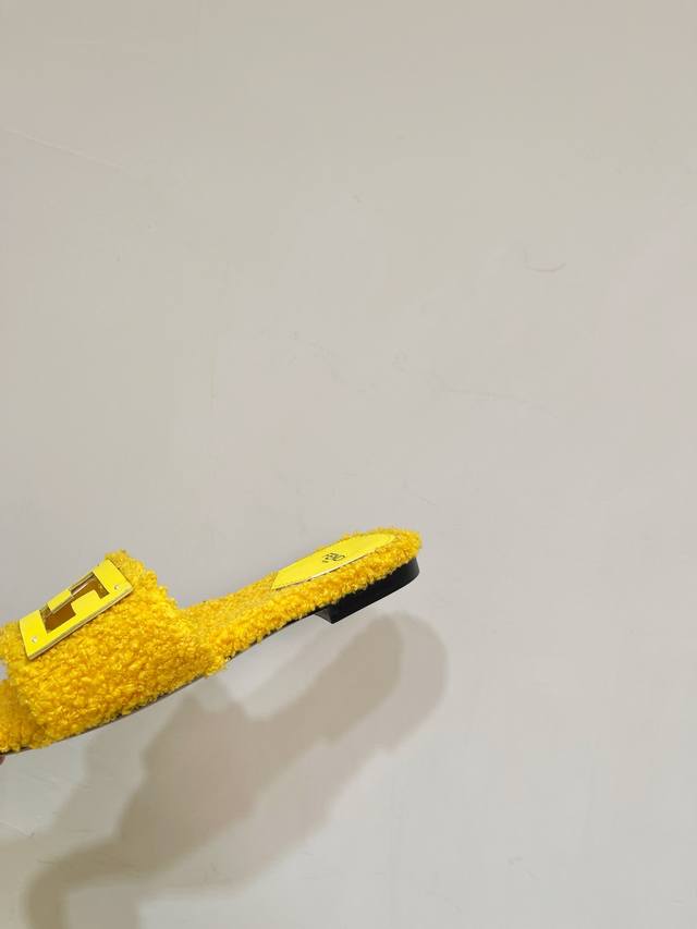 Fendi芬迪 24Ss 新款ff金扣镂空 毛毛拖鞋
