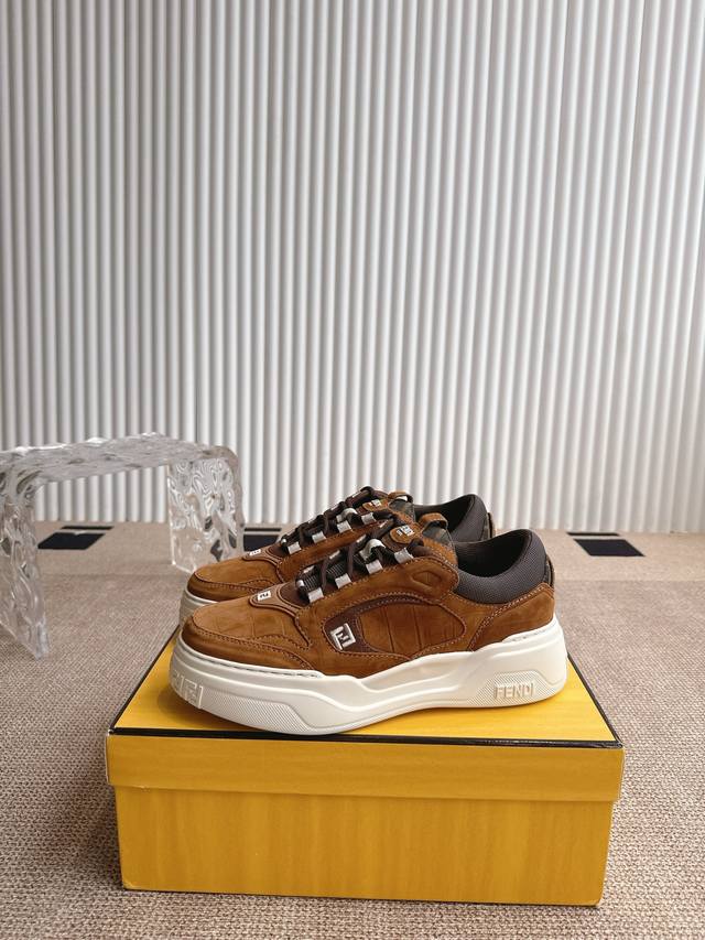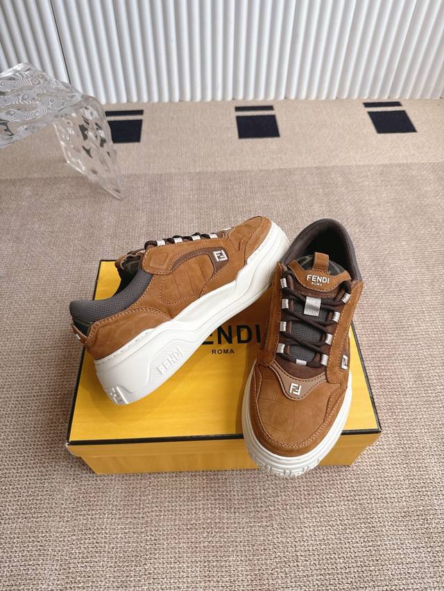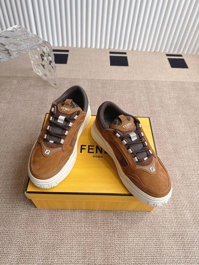 最新版面 Fendi芬迪 25新色 板鞋休闲运动鞋 情侣款 Fd Match 升级新款 全皮面拼接 新鲜血液注入加Ff复古的设计 超好看百搭...