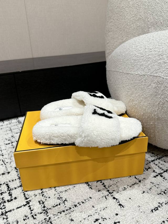 / Fendi 芬迪 24 秋冬新款居家平底毛拖 懒人拖 好看好萌哒 羊羔毛材料,蓬松柔软,不易变形。区别于市场次级材料,大底:进口私模开出对版大底,质感超好。秋冬