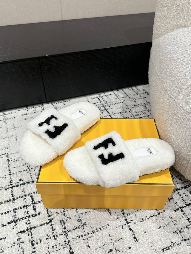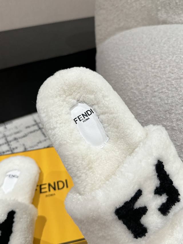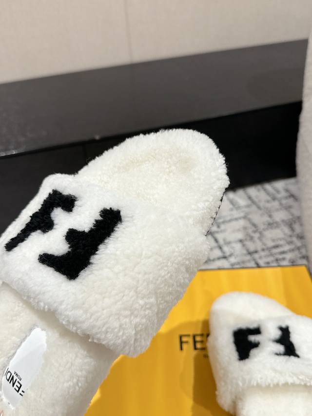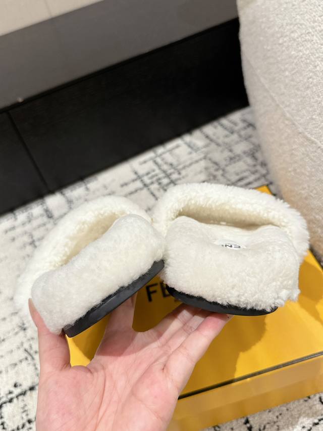 Fendi 芬迪 24 秋冬新款居家平底毛拖 懒人拖 好看好萌哒 羊羔毛材料,蓬松柔软,不易变形。区别于市场次级材料,大底:进口私模开出对版大底,质感超好。秋冬