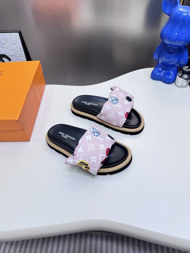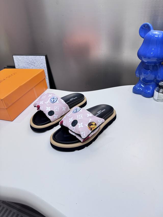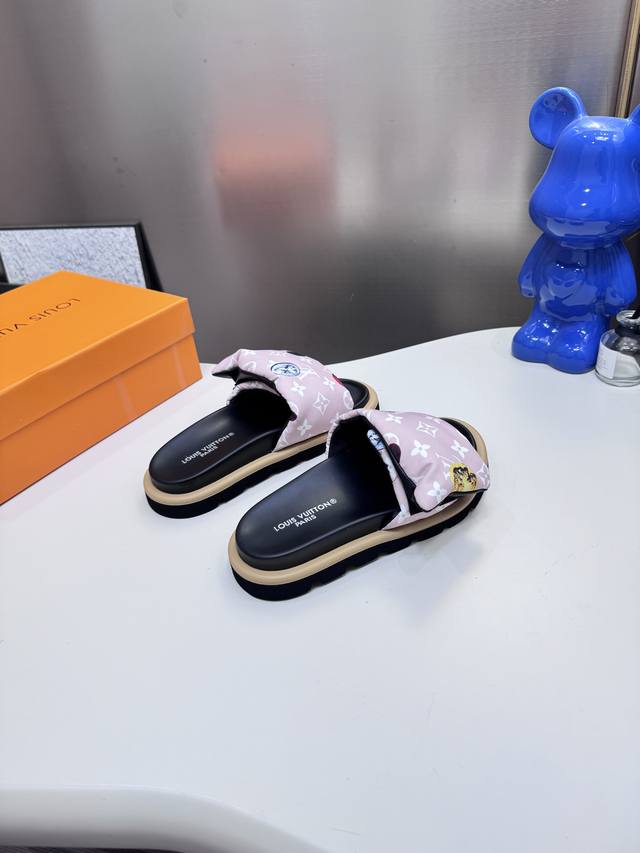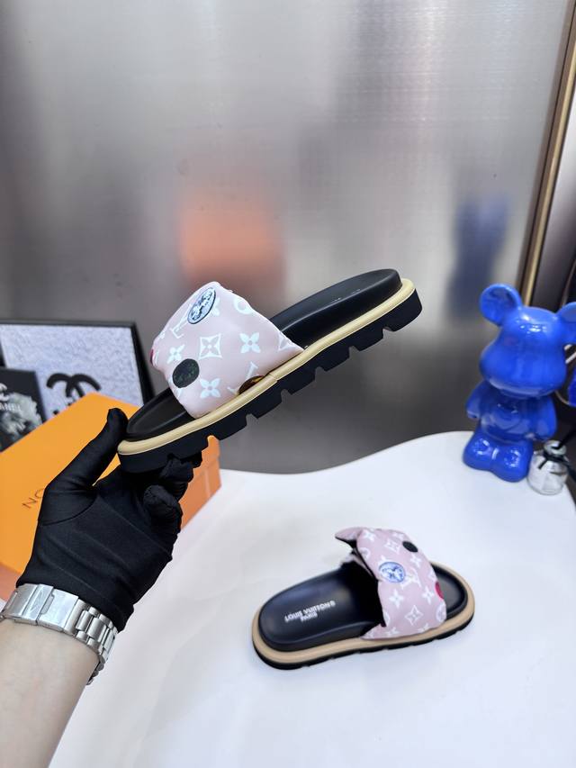 Lv 2025春夏新品 专柜Lv驴牌爆款 5D打印永不掉色 本款 Pool Pillow Comfort 平底凉拖取材科技织物,以高频压印技术重绎 Monogr