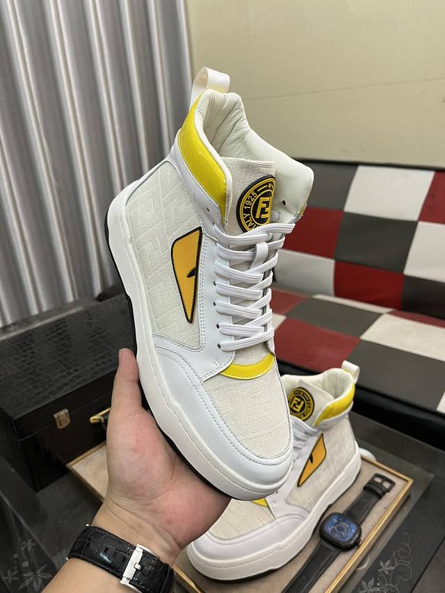 出厂价: 芬迪 新款高邦休闲鞋,全球限量款鞋面采用原版皮料logo鞋面顶级做工 !内里澳洲羊毛,系带板鞋舒适透气 奢华尊贵 码数:38-44 3色可选