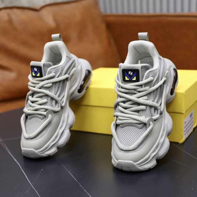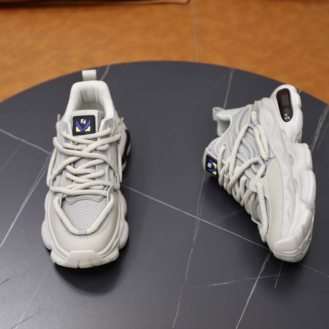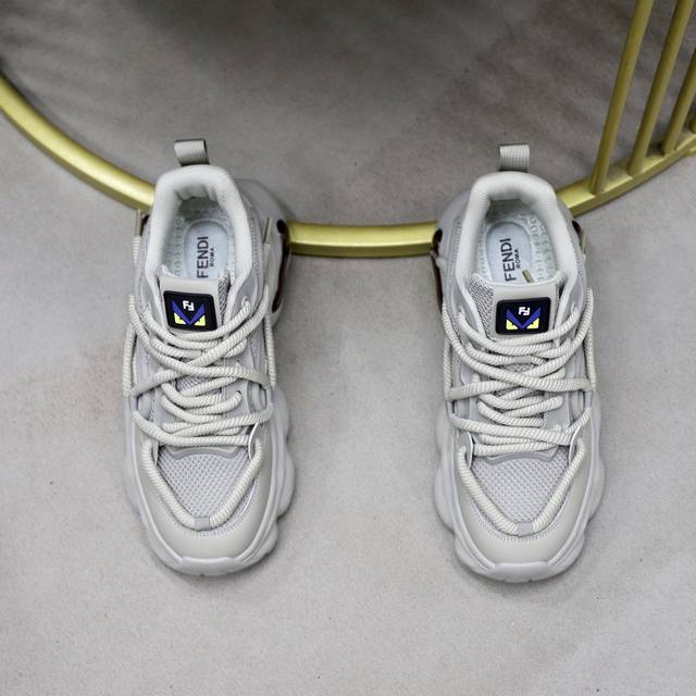 新品FD休闲运动鞋,波浪形鞋底刻有F字样。鞋跟饰有凸纹压花Fend*...