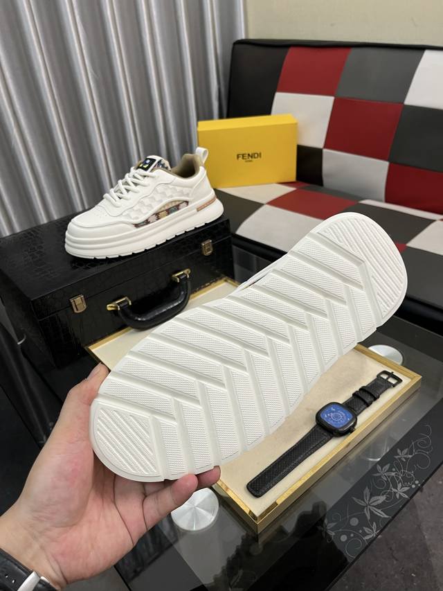 出厂价pp: 芬迪Fendi 原单品质.~ 独特现代风运动鞋。休闲鞋潮男必备款 意大利进口原版品牌,进口原版皮,羊里 拒绝脱色磨脚 鞋底:原厂特供原版底,法国懒人风格设计 贴脚 在贴原单品质 超舒服原版底 。就好像实物拍摄实物更赞 码数:38-442色可选