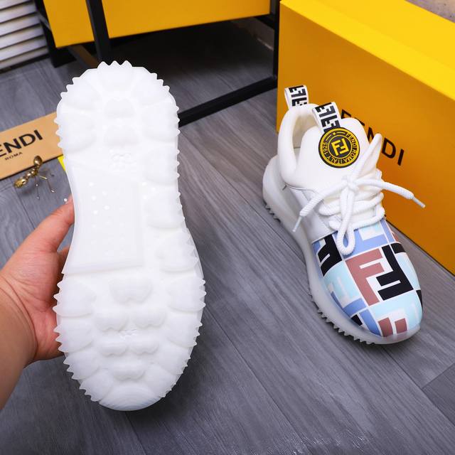 商品商标:Fendi 芬迪 休闲鞋 正码码数: 38-44 商品材料:精选 牛皮拼接透气鞋面 网布内里 橡胶大底