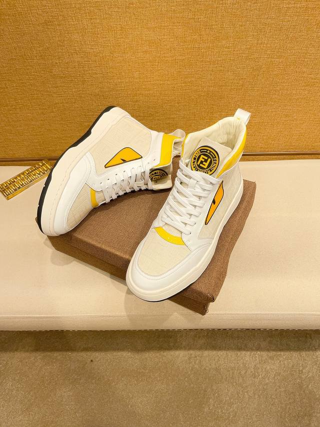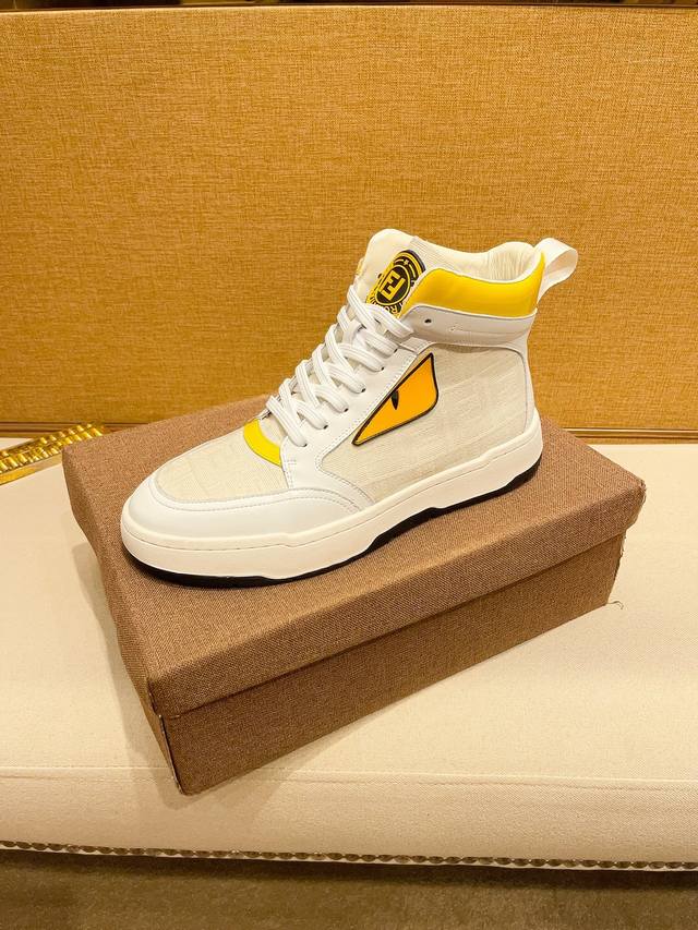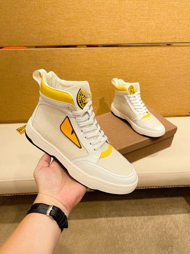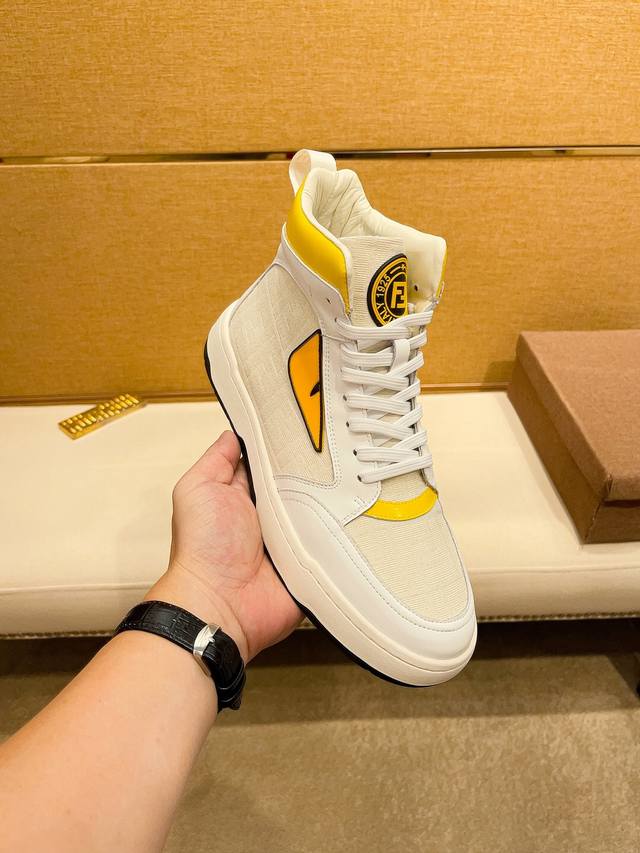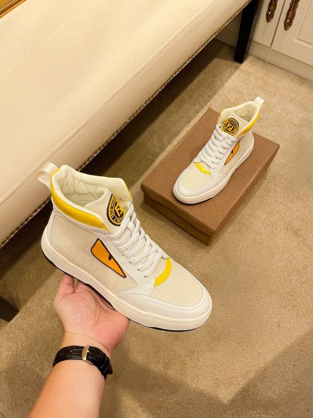 工厂价 。 高帮 F D 芬迪顶级新款专柜同步发售,鞋面意大利进口头层牛皮。全进口真皮内里,完全1比1复刻,鞋底:原厂特供原版底,独家活动成型底超级舒适,原厂跟单货,高品质,可随意进出专柜,欢迎对比。码数:38-44