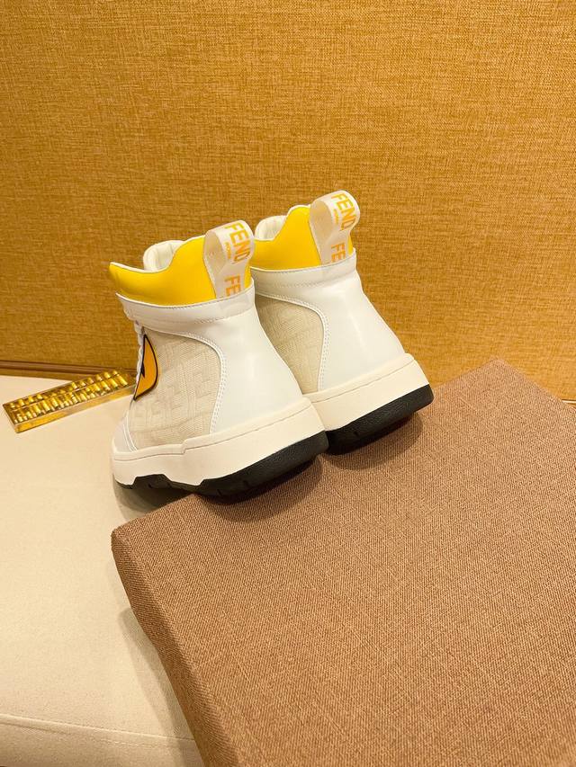 商品名称:FENDI 芬迪 正规码数: 38-44 高帮鞋 商品材料:精选 牛皮鞋面,柔软羊皮内里;原厂大底。