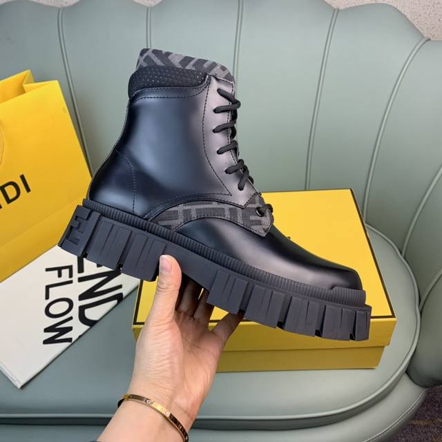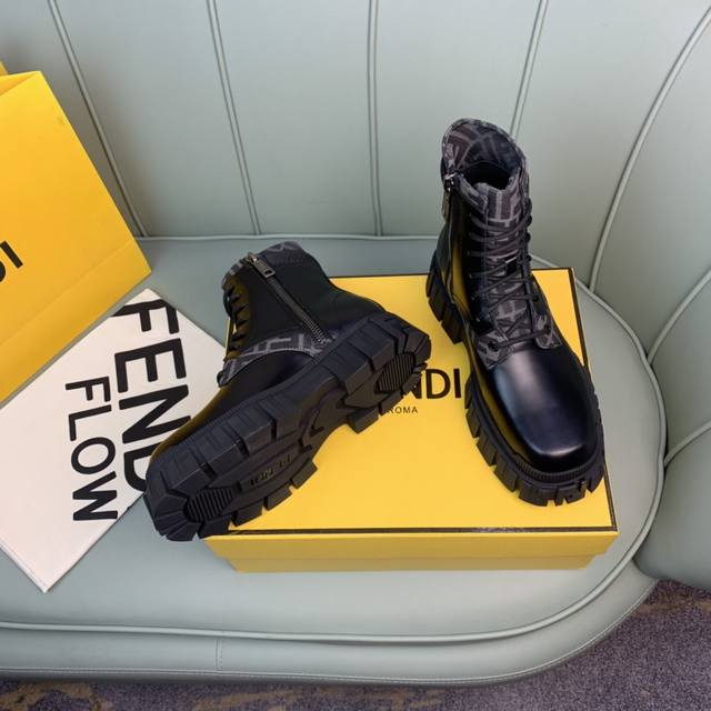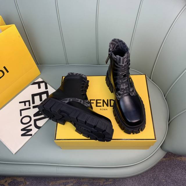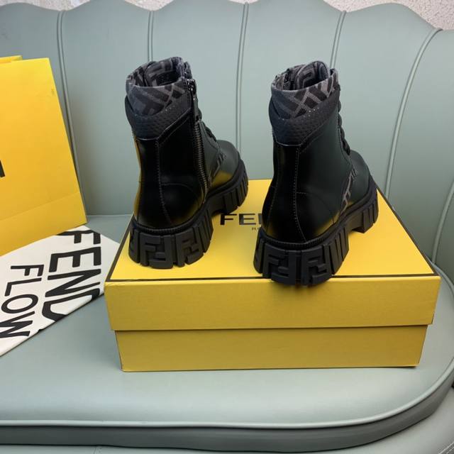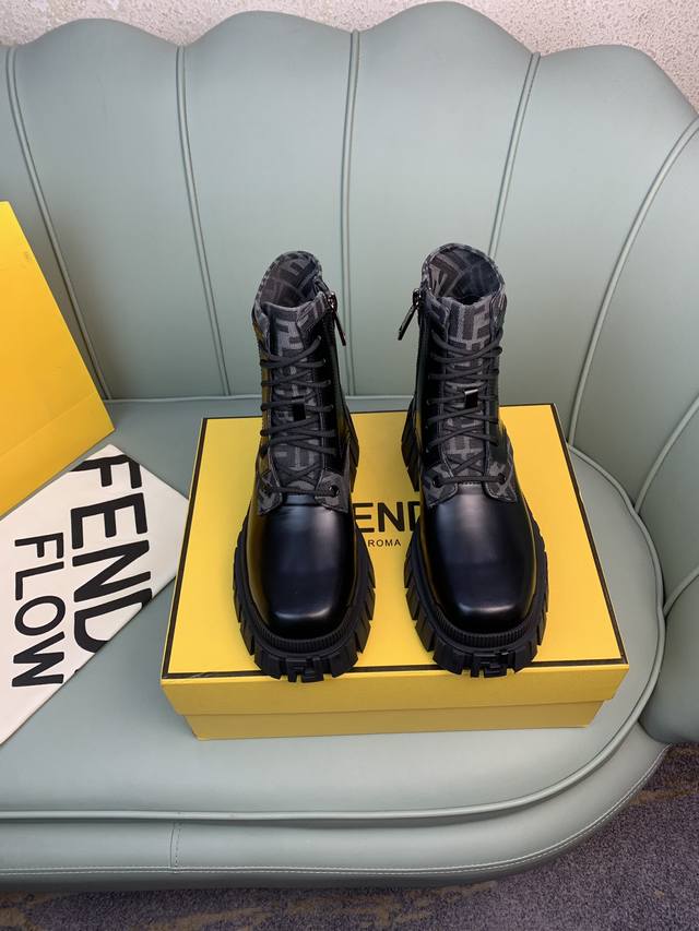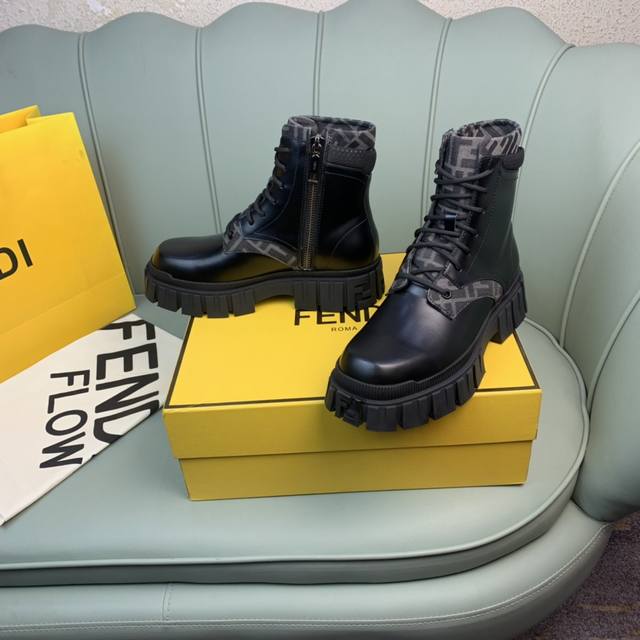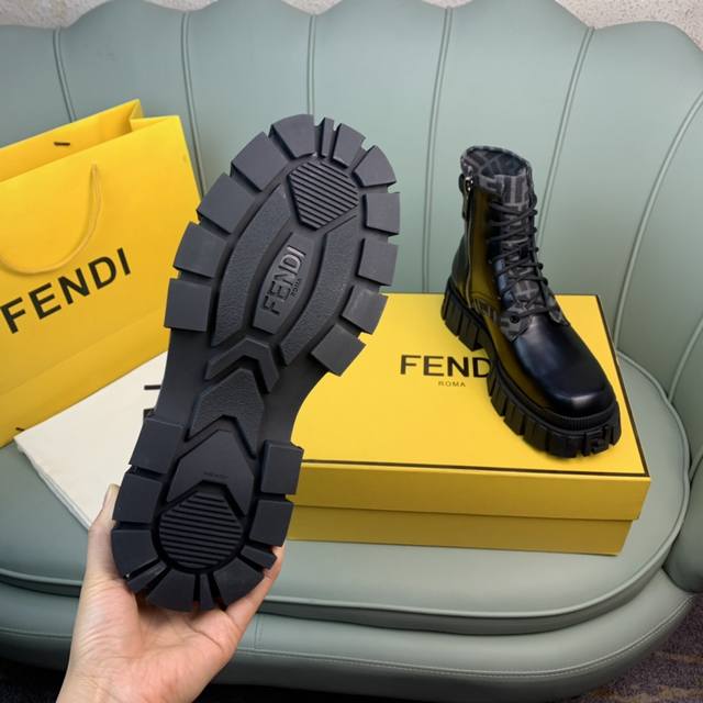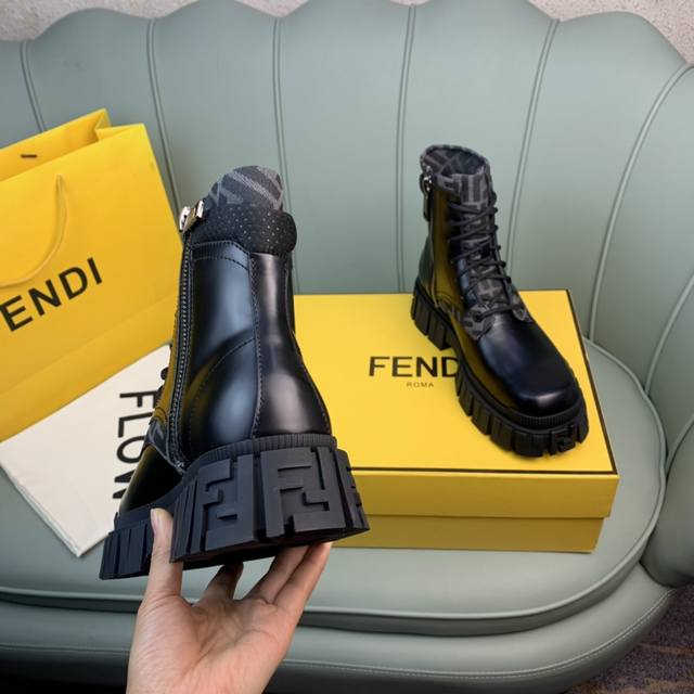 Fendi.芬迪 男士最新马丁靴.黑色开边珠牛皮材质,牛里 原单品质,1:1复刻