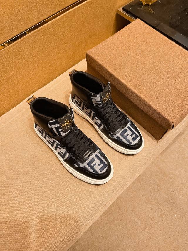 出厂价 Fendi 芬迪 男士新款低帮休闲鞋上市鞋身采用品牌专用印花面料+牛皮,羊皮内里,透气不捂脚!时尚休闲鞋...