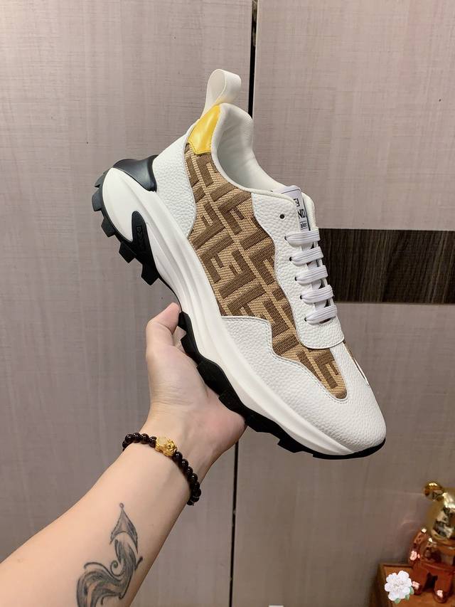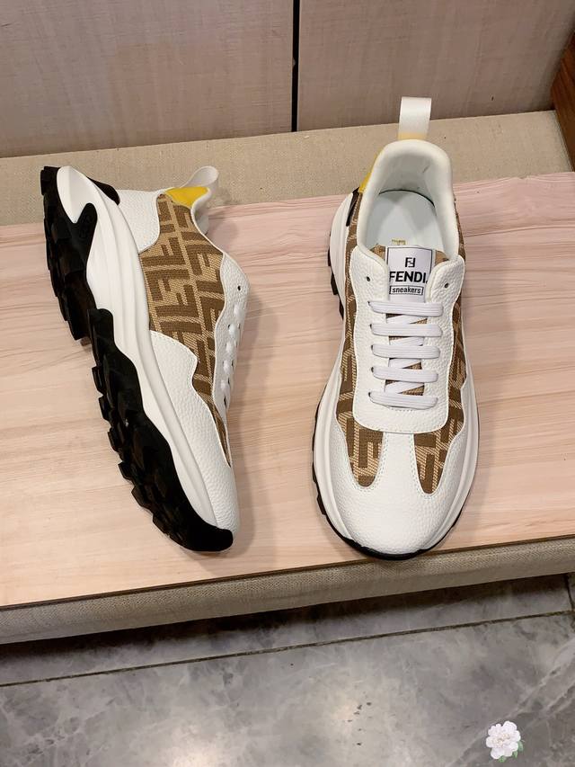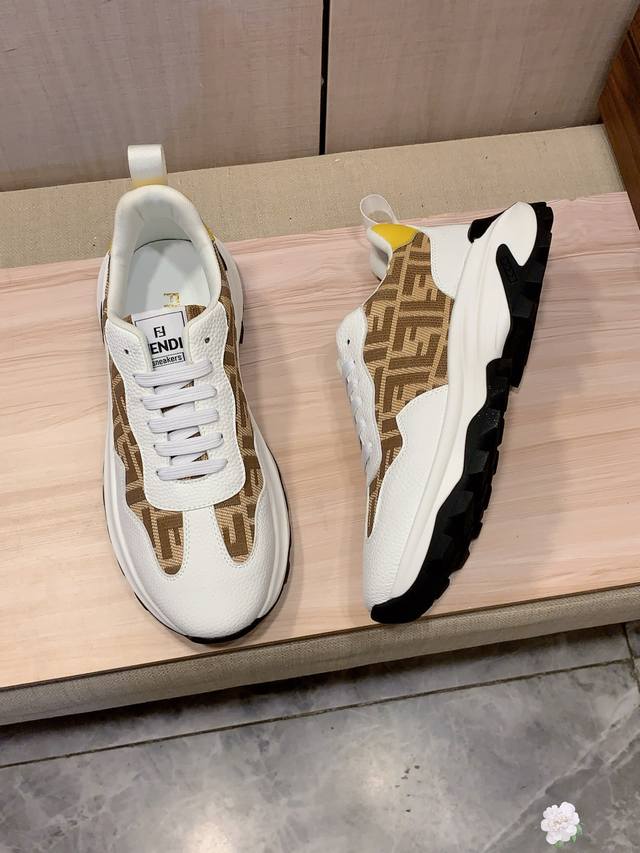 新款: 厂价 芬迪Fendi* 最新爆款休闲鞋,顶端品牌 奢侈~代购,顶级~质量。 鞋面選用进口透气牛皮搭配材质透气羊皮垫脚 精细做工。原版个性时尚柔软橡膠耐磨防滑大底,上脚轻巧舒适,实物拍摄實物更好看,0121:码: 38-44,3色入选