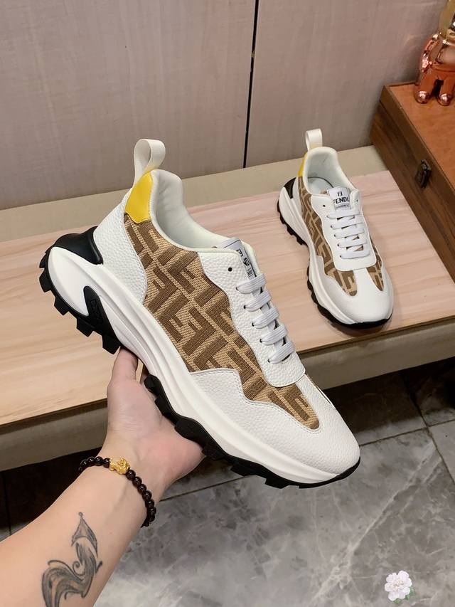 新款: 厂价 芬迪Fendi* 最新爆款休闲鞋,顶端品牌 奢侈~代购,顶级~质量。 鞋面選用进口透气牛皮搭配材质透气羊皮垫脚 精细做工。原版个性时尚柔软橡膠耐磨