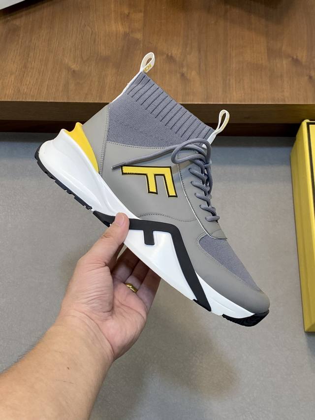 调工厂p价 男装男鞋 运动原单新品 Fen Di 芬迪 男生休闲运动鞋!顶级原版货 Match高帮运动鞋靴!顶级代购高端好货。原版进口小牛皮 反毛拼接 毛巾里 垫脚、原版大底!