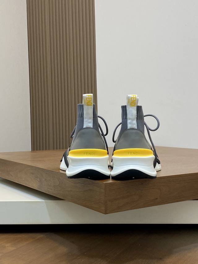Fend* 芬迪 芬家Flow 男士休闲运动鞋,搭配松紧带、侧拉链,刻有F的波纹鞋底。鞋跟饰有凸纹Fendi...