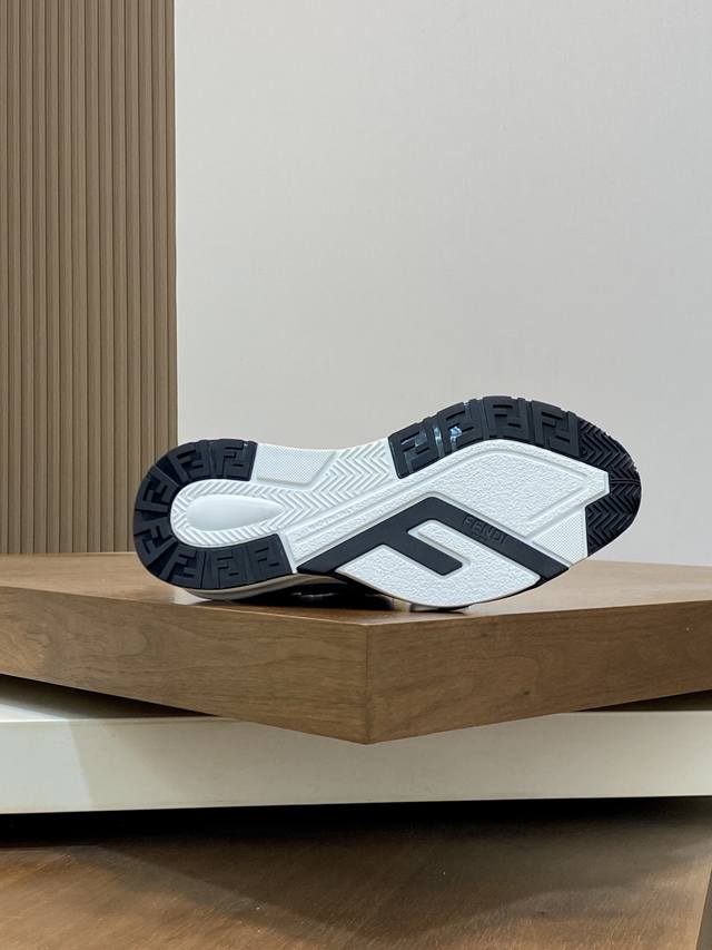 Fend* 芬敌 新品男士低帮厚底运动鞋,套脚方式搭配松紧带、侧面印有f的logo 鞋头装饰有凸纹flow字样...