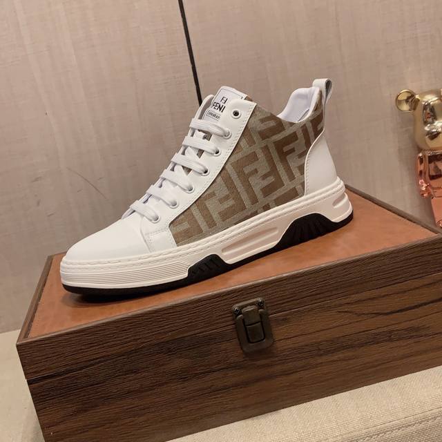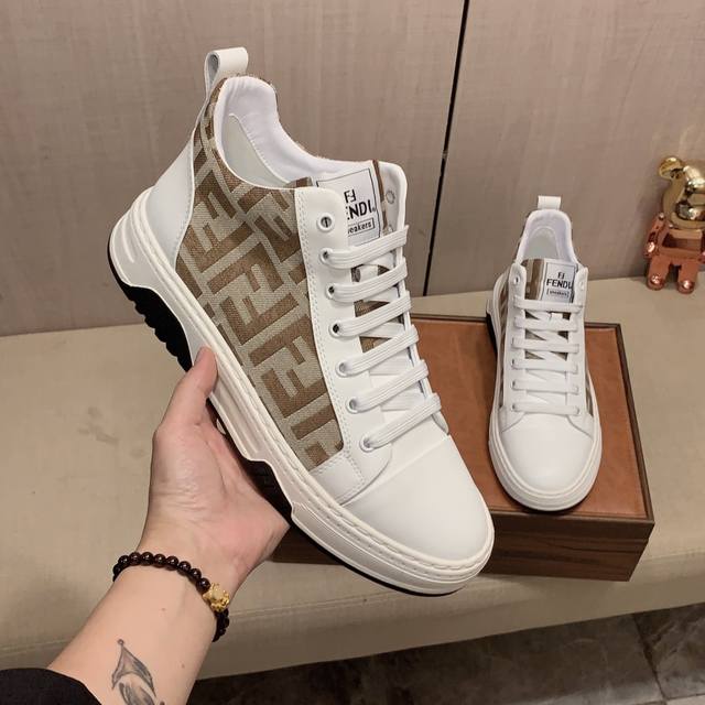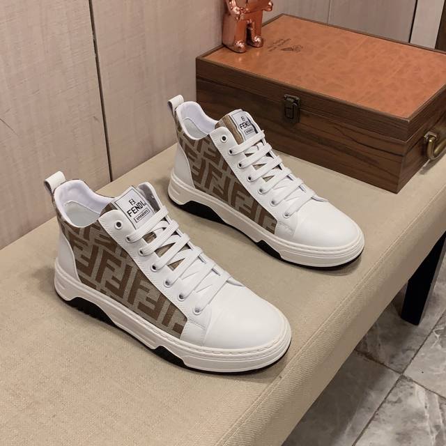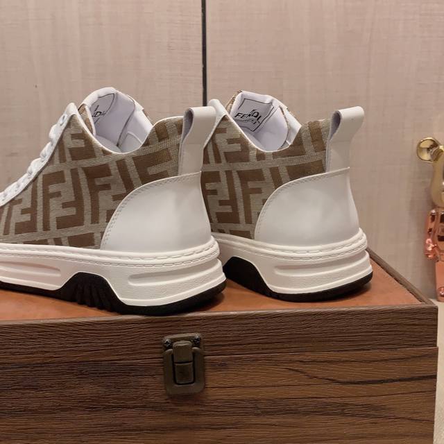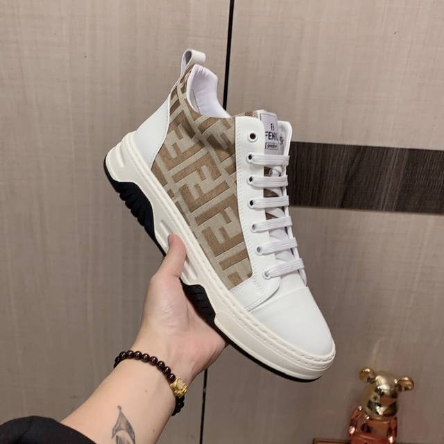 出厂价 Fendi 芬迪高帮经典舒适男士,这款复杂的运动鞋是由柔软的小牛皮真皮内里原版超轻橡胶材质粗纹大底...
