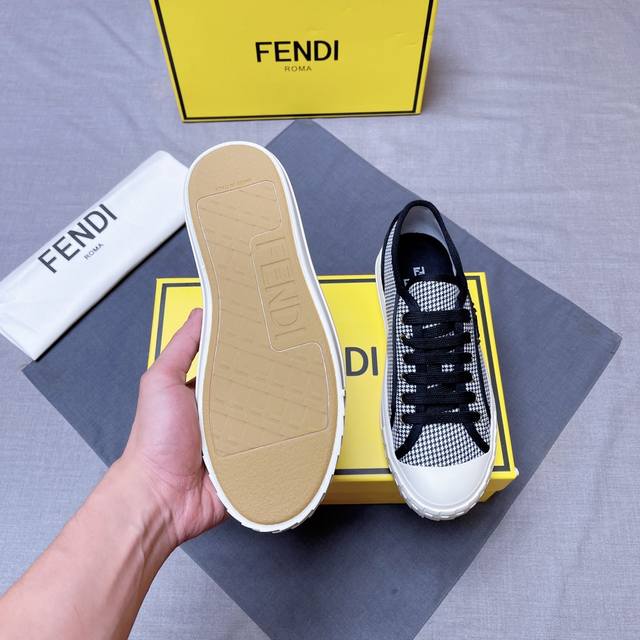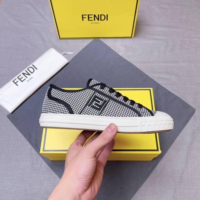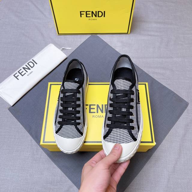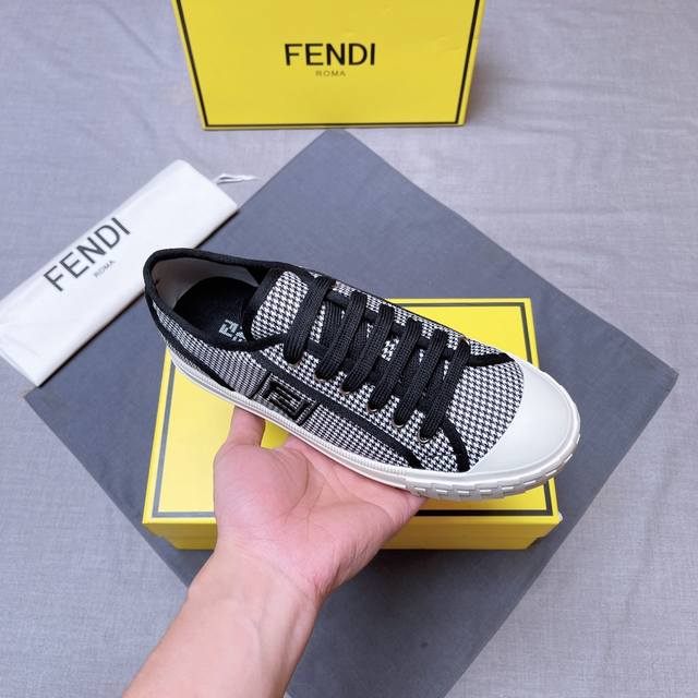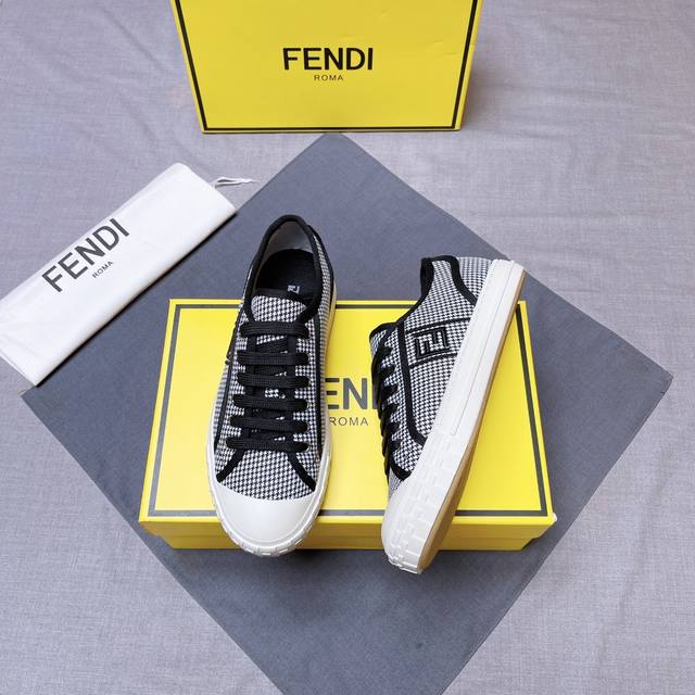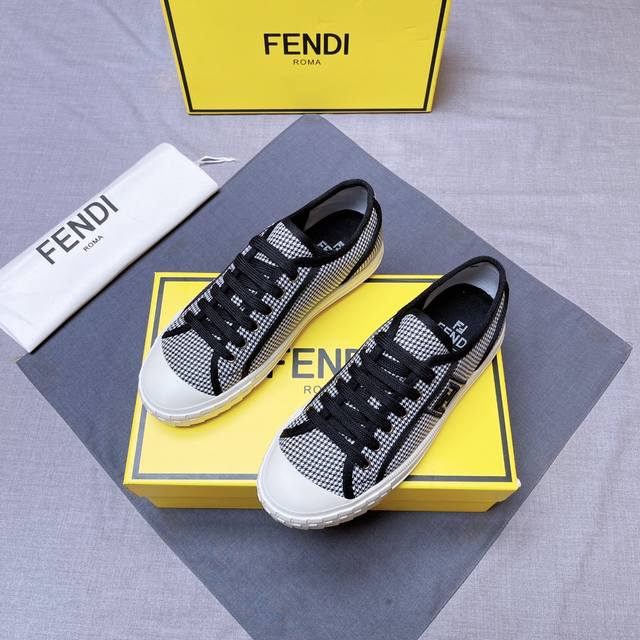 Fendǐ Domino运动鞋 带有提花FF图案,鞋头饰有凸纹压花FF图案 帆布鞋面,TPU定制大底 Size:38-45 45定做 编号018