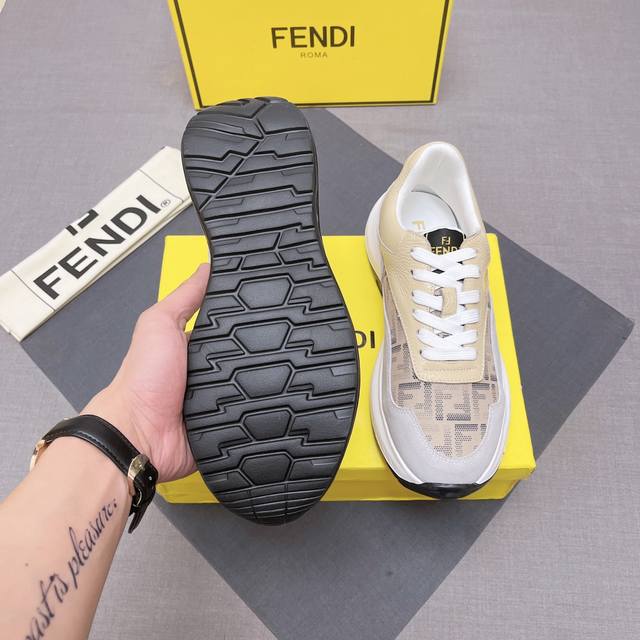 Fendi 芬迪 2024男士最新款!专柜同步上市!原版一比一复刻。全进口头层小牛皮搭配网布 舒适内里 羊皮垫脚,内里采用头层顶级羊皮,原版原厂特供橡胶大底。引