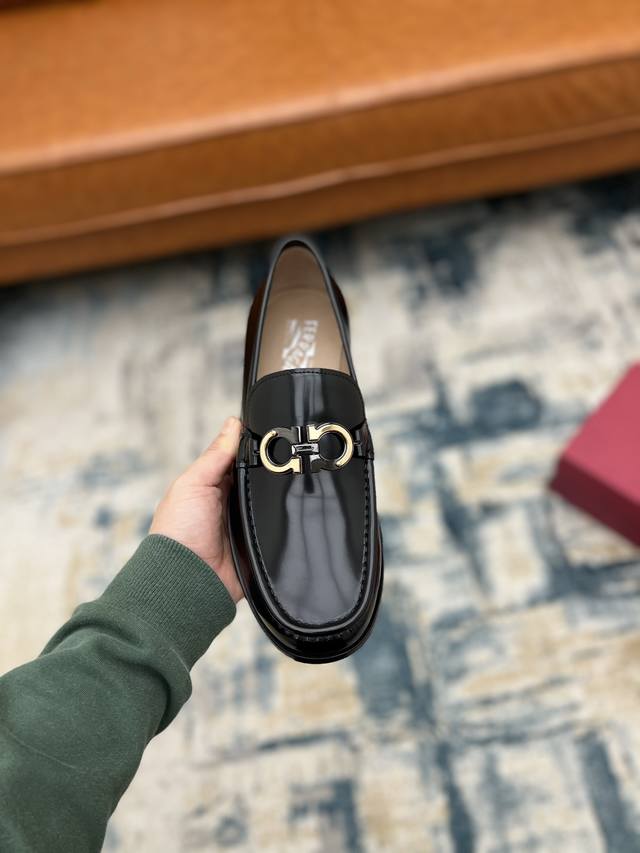 / ferragam~ 码数:38-45 F家官网同步新品男士正装皮鞋,完美做工,顶级复刻,采用进口意大利小牛皮设计,古法手工改色搭配原版五金扣饰,牛皮内里 垫脚,