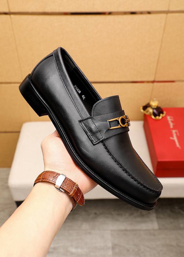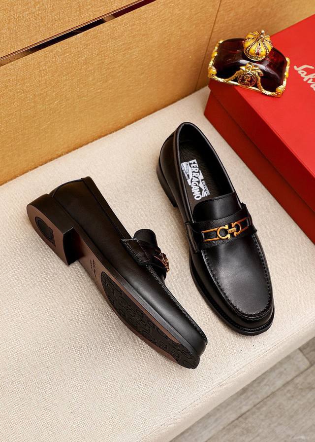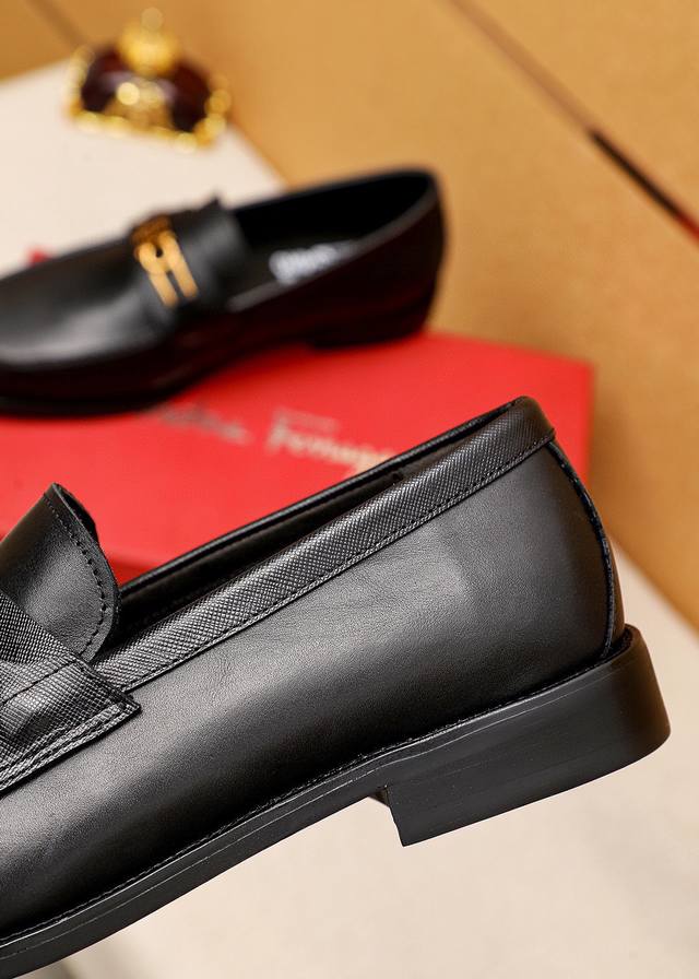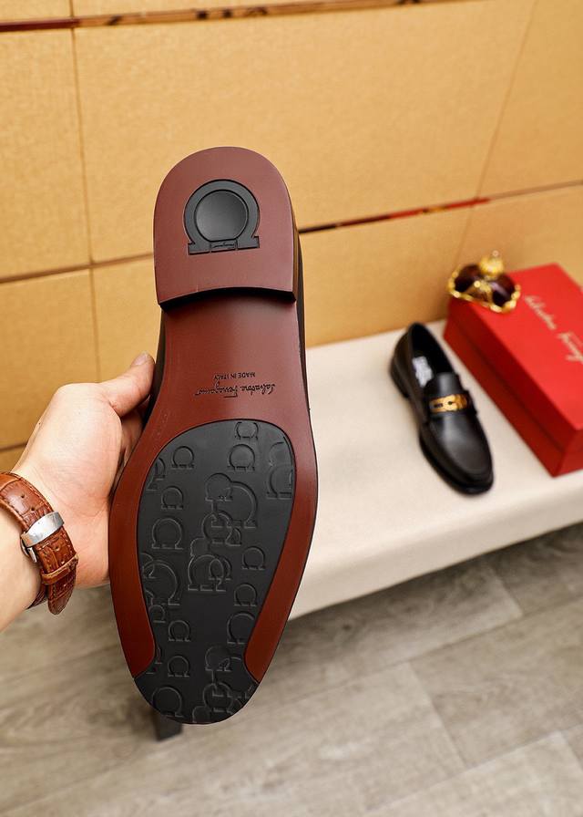 商品商标:Ferragamo 菲拉格慕 休闲皮鞋 正码码数: 38-44 45.46订制 商品材料:精选 进口头层小牛皮鞋面+奢华五金扣,进口水染牛皮内里。强烈