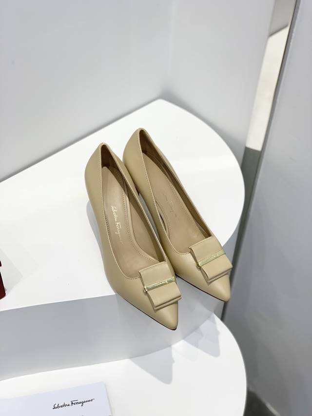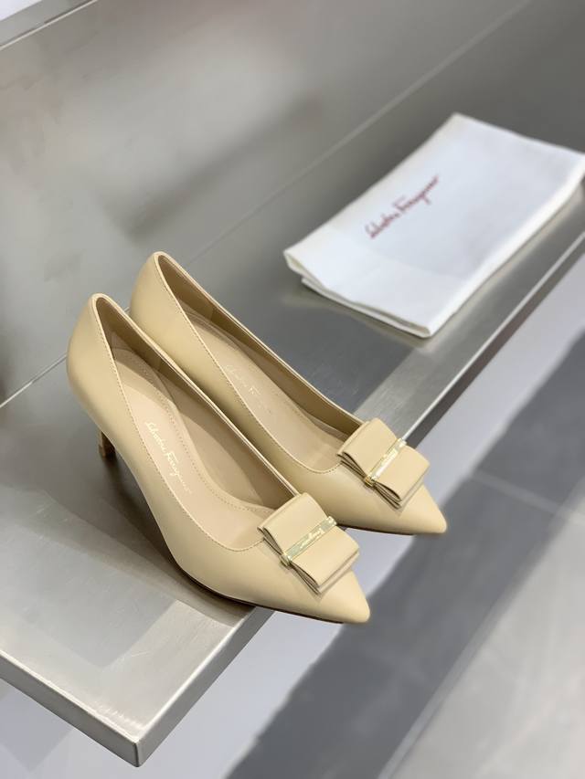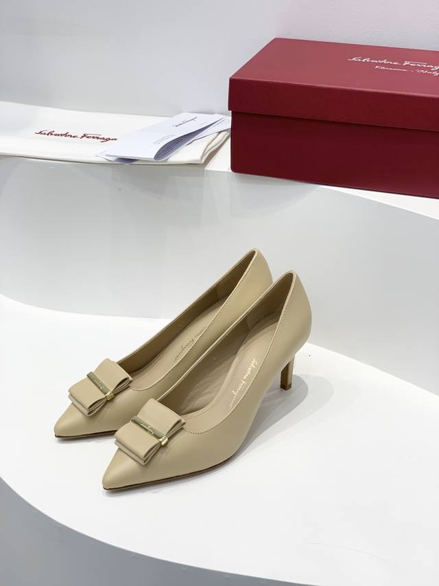 现货Sf Salvatore Ferraga*O 新品上新!菲拉*慕双蝴蝶结尖头高跟鞋单鞋 Ferraga*O以锥形鞋头和新颖而性感的剪裁诠释此鞋款,配有双层蝴蝶结,更为精巧别致。