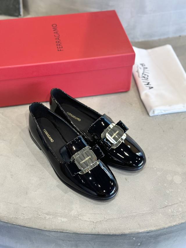 Ferraga*O菲拉*慕新版Vara蝴蝶结软漆皮乐福鞋!