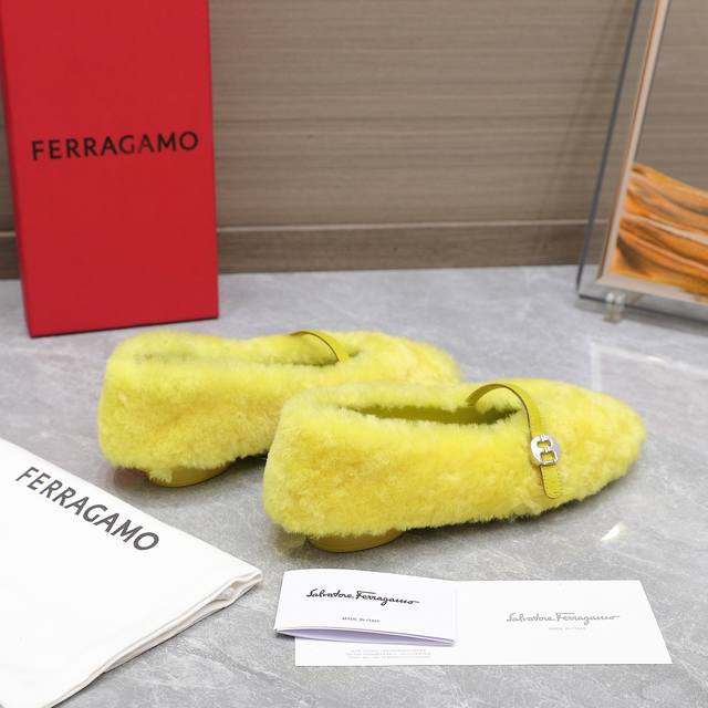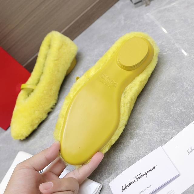 菲拉格慕原版复刻真毛平底单鞋