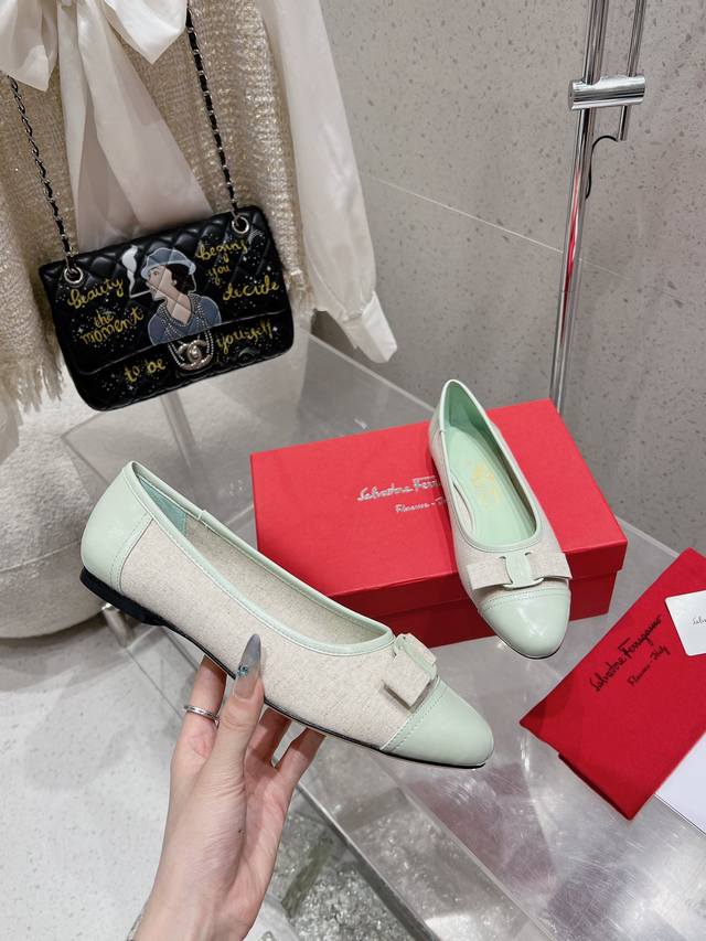 Ferragam 菲拉格慕专柜春夏系列新品圆头蝴蝶结设计,鞋型线条流畅 版型超赞 上脚舒适.饱满显瘦.拉长腿部线条