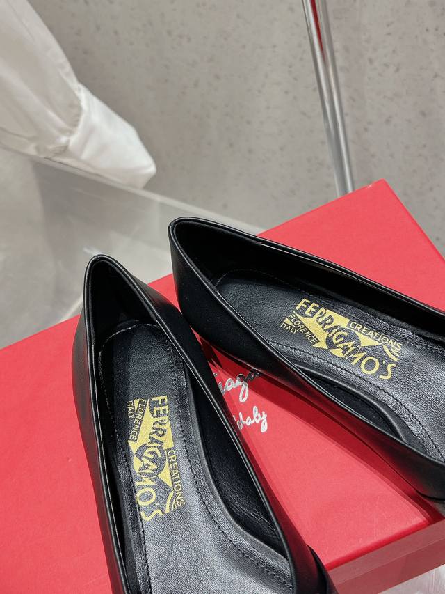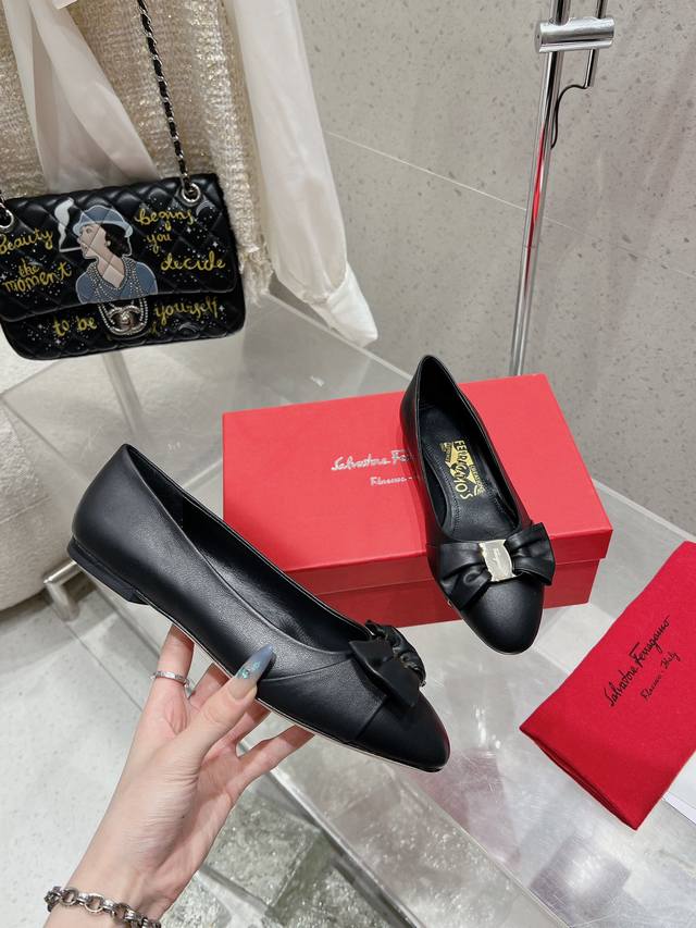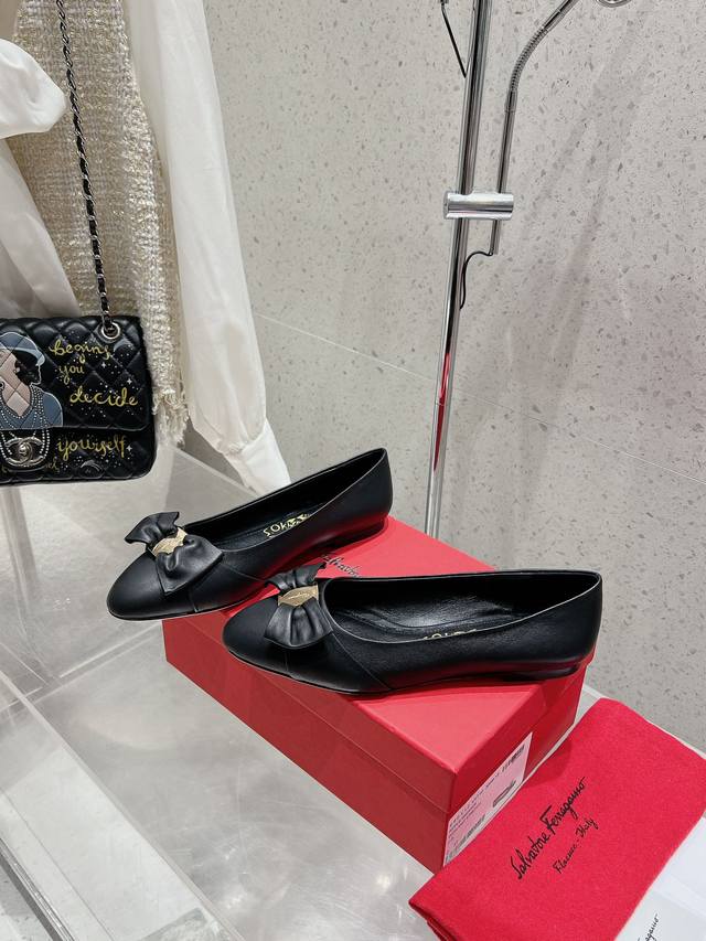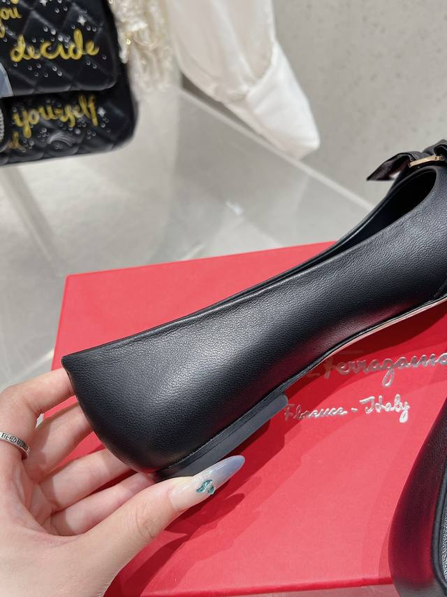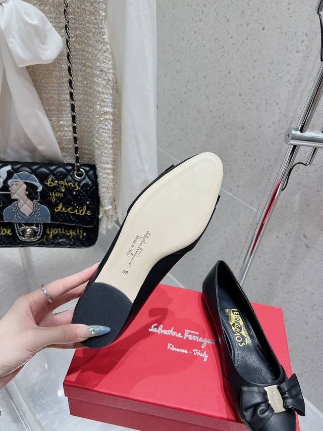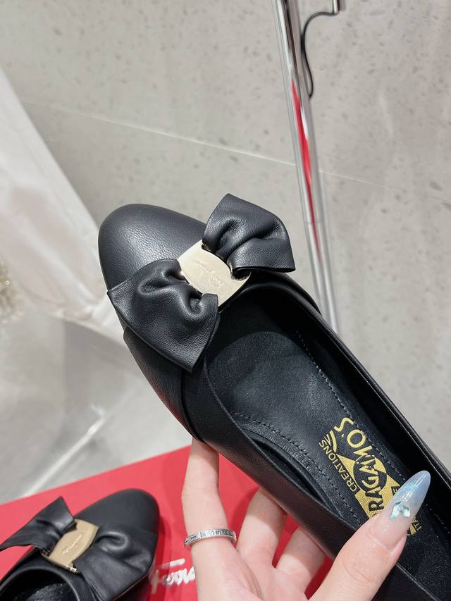 Ferragam 菲拉格慕专柜春夏系列新品圆头蝴蝶结设计,鞋型线条流畅 版型超赞 上脚舒适.饱满显瘦.拉长腿部线条 进口小牛皮配高定五金扣 小羊皮内里 意大利高