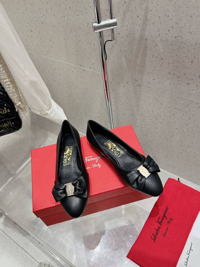 / Ferragam 菲拉格慕专柜春夏系列新品圆头蝴蝶结设计,鞋型线条流畅 版型超赞 上脚舒适.饱满显瘦.拉长腿部线条 进口小牛皮配高定五金扣 小羊皮内里 意大利高