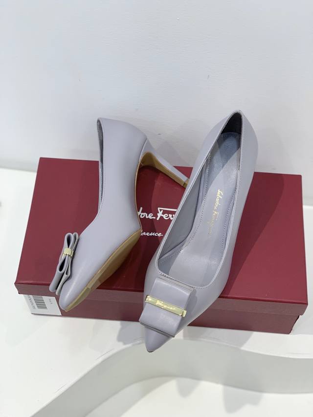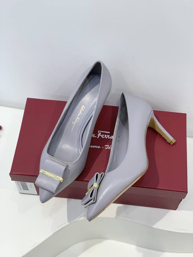 salvatore Ferragamo 新品上新!菲拉格慕双蝴蝶结尖头高跟鞋单鞋 Ferragamo以锥形鞋头和新颖而性感的剪裁诠释此鞋款,配有双层蝴蝶结,更为精巧别致。
