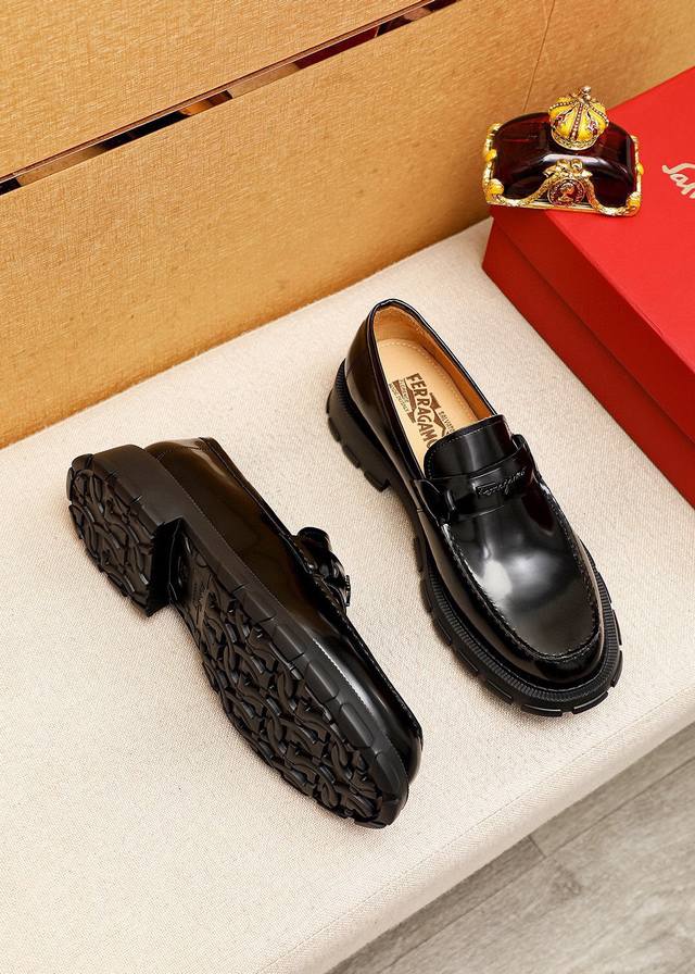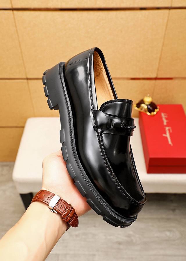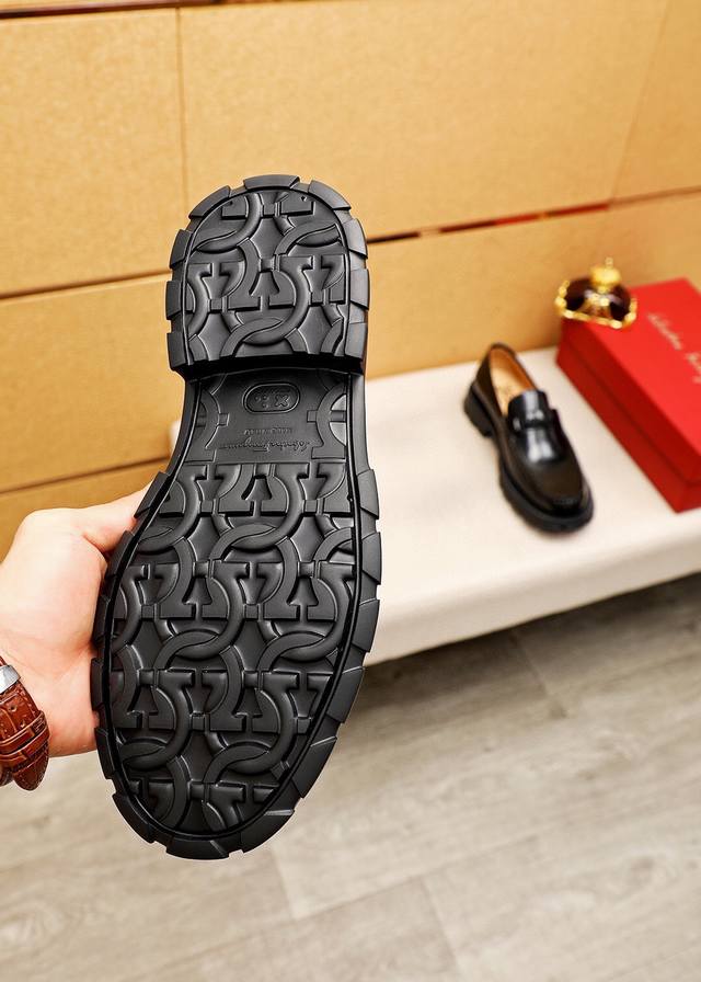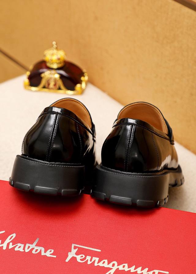 专柜品质顶级代购菲拉格慕爆款!2024男士正装皮鞋!纯正高品质可1:1比较!面料:意大利进口原版定制头层开边珠牛皮,内里:全进口水染牛皮里垫!专柜同步发售,鞋底