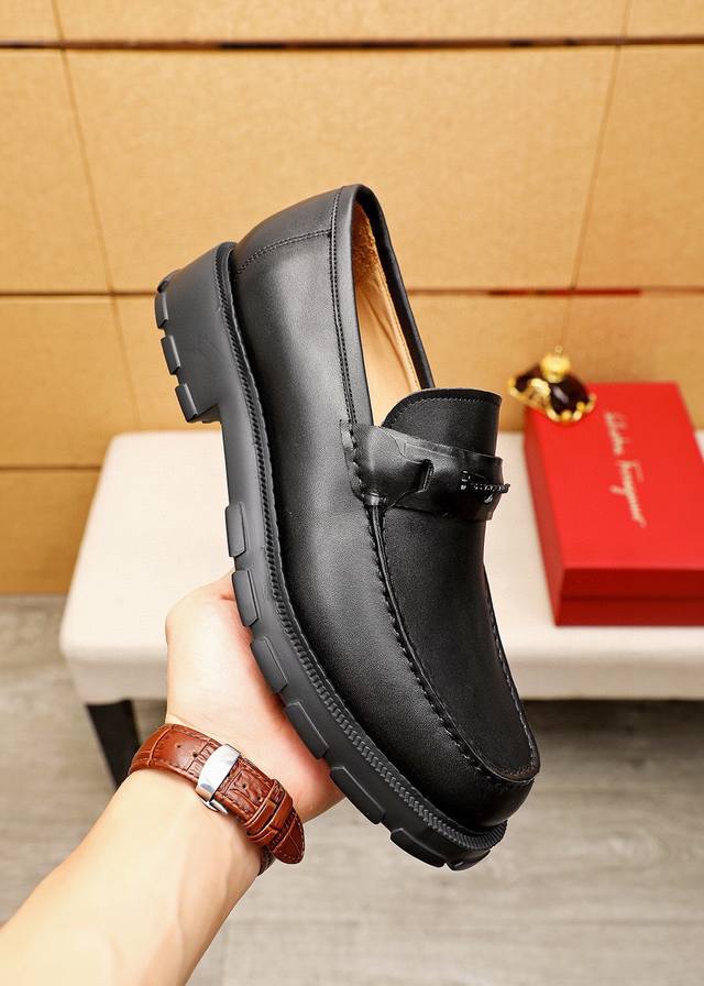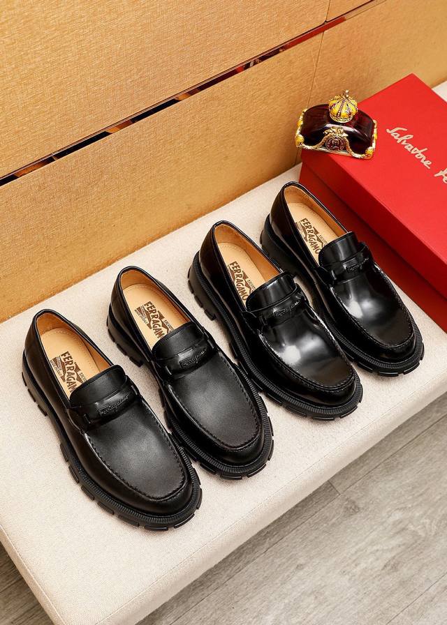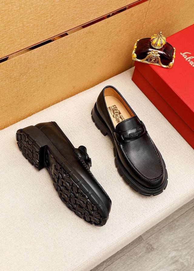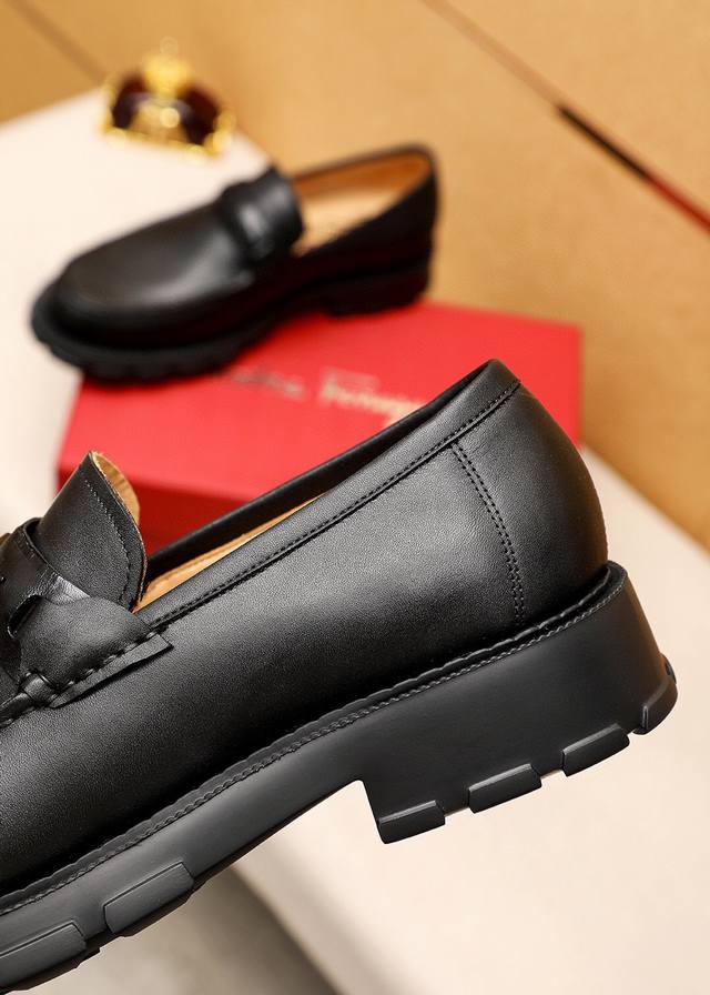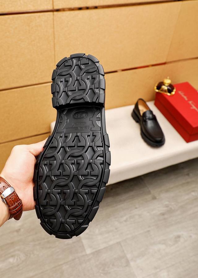 专柜品质顶级代购菲拉格慕爆款!2024男士正装皮鞋!纯正高品质可1:1比较!面料:意大利进口原版定制头层牛皮,内里:全进口水染牛皮里垫!专柜同步发售,鞋底:意大利真皮十东莞进口橡胶大底!原厂特供原版底超级舒适,原厂跟单货,高品质,可随意进出专柜,欢迎对比专柜同步,正码38–44 45订制