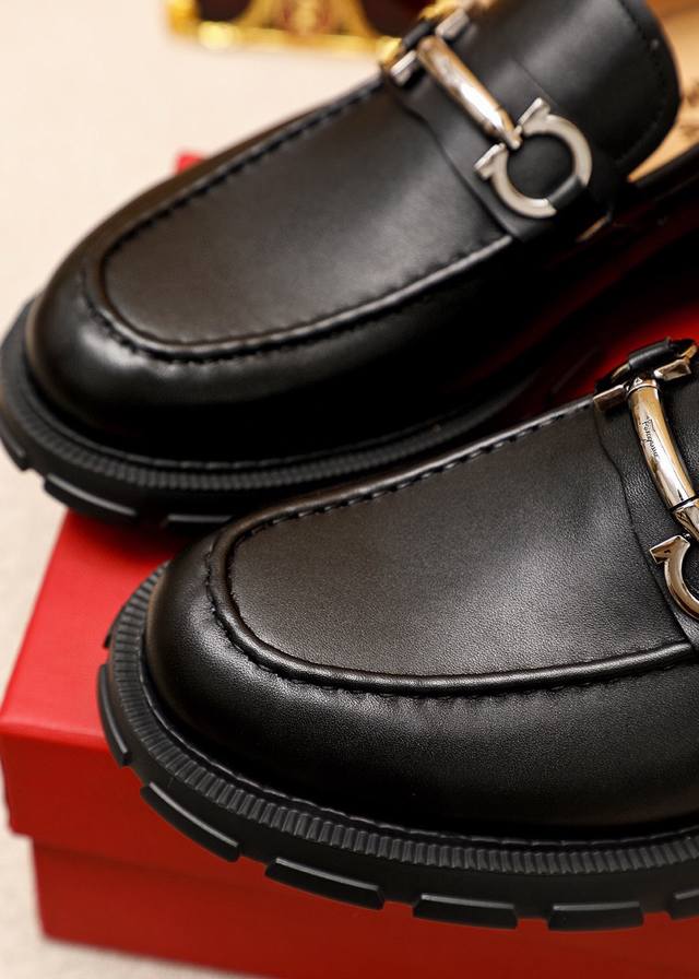 专柜品质顶级代购菲拉格慕爆款!2024男士正装皮鞋!纯正高品质可1:1比较!面料:意大利进口原版定制头层牛皮,内里:全进口水染牛皮里垫!专柜同步发售,鞋底:意大利真皮十东莞进口橡胶大底!原厂特供原版底超级舒适,原厂跟单货,高品质,可随意进出专柜,欢迎对比专柜同步,正码38–44 45订制