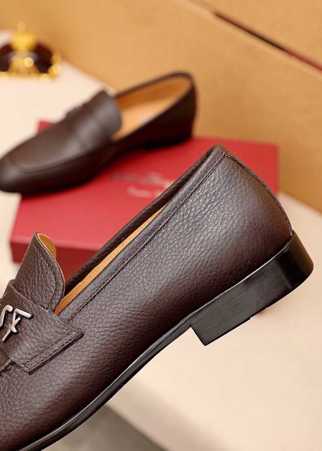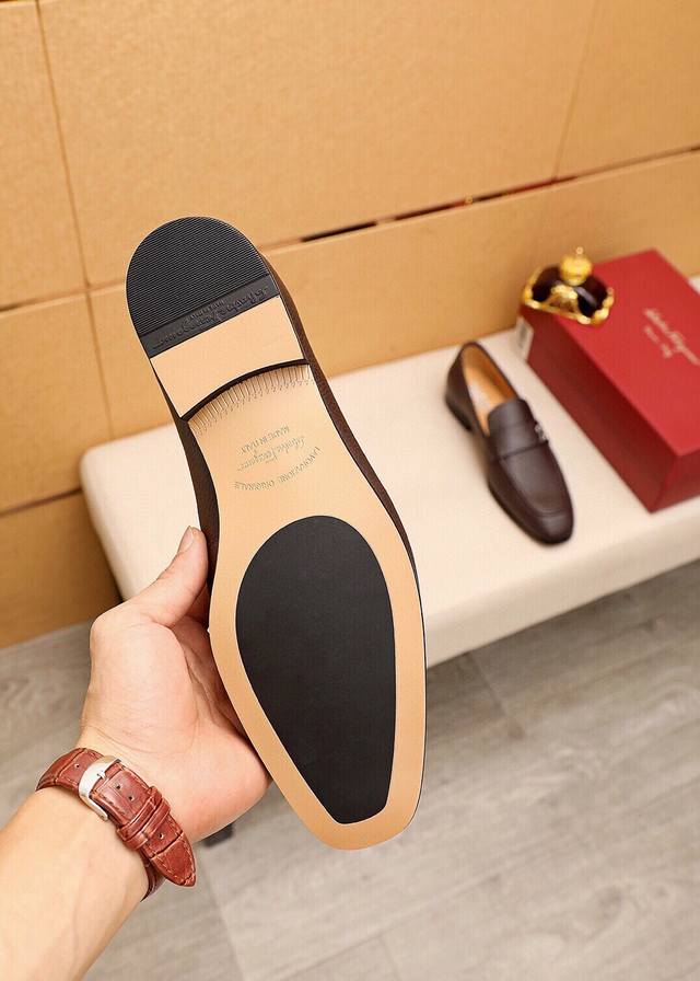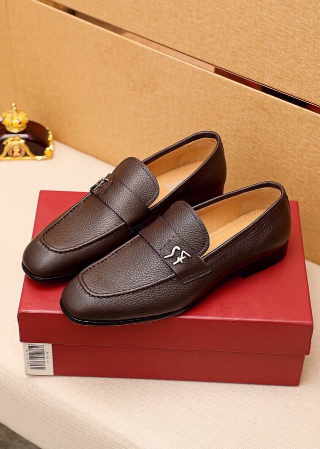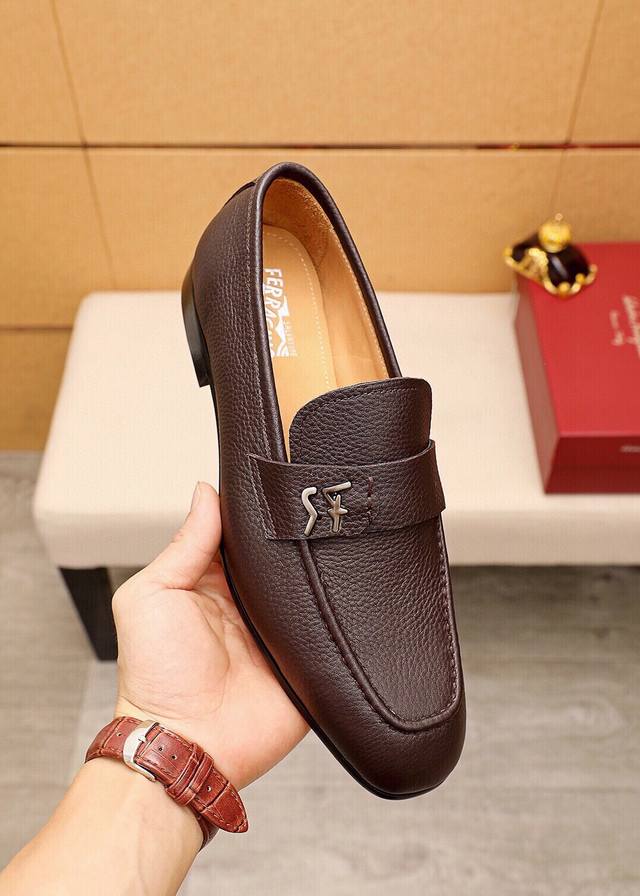 专柜品质顶级代购菲拉格慕爆款,2024男士正装皮鞋!纯正高品质可1:1比较!面料:意大利进口原版定制头层荔枝纹小牛皮内里:全进口水染牛皮里垫!专柜同步发售,鞋底:东莞进口组合大底!原厂特供原版底超级舒适,原厂跟单货,高品质,可随意进出专柜,欢迎对比专柜同步,正码38–44 45订制