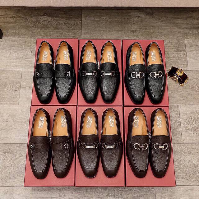 / 专柜品质顶级代购菲拉格慕爆款,2024男士正装皮鞋!纯正高品质可1:1比较!面料:意大利进口原版定制头层荔枝纹小牛皮内里:全进口水染牛皮里垫!专柜同步发售,鞋底