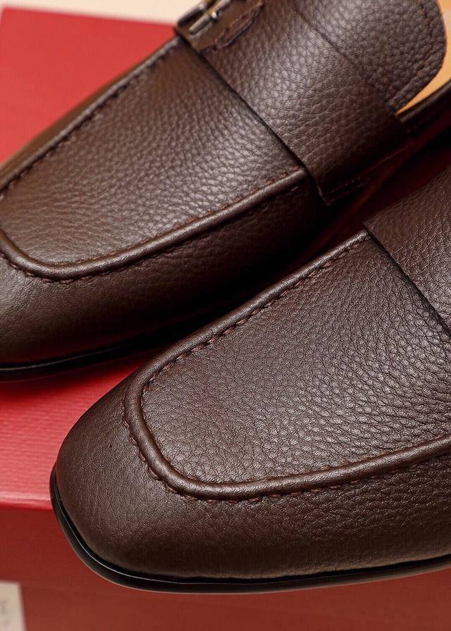 专柜品质顶级代购菲拉格慕爆款,2024男士正装皮鞋!纯正高品质可1:1比较!面料:意大利进口原版定制头层荔枝纹小牛皮内里:全进口水染牛皮里垫!专柜同步发售,鞋底