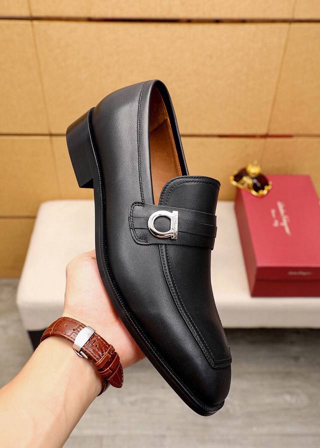 专柜品质顶级代购菲拉格慕爆款!2024男士正装皮鞋!纯正高品质可1:1比较!面料:意大利进口原版定制小牛皮!内里:全进口水染牛皮里垫!专柜同步发售原厂鞋底:东莞进口真皮大底!原厂特供原版底超级舒适,原厂跟单货,高品质,可随意进出专柜,欢迎对比专柜同步,正码39–44 38.45订制