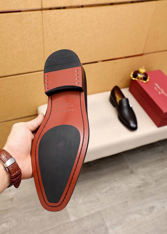 专柜品质顶级代购菲拉格慕爆款!2024男士正装皮鞋!纯正高品质可1:1比较!面料:意大利进口原版定制小牛皮!内里:全进口水染牛皮里垫!专柜同步发售原厂鞋底:东莞