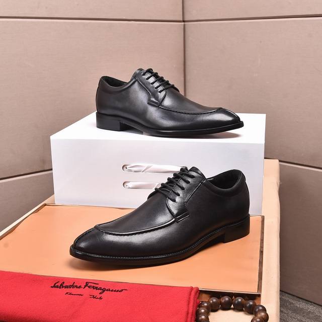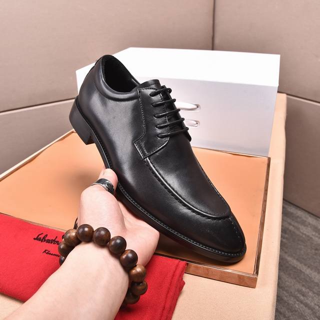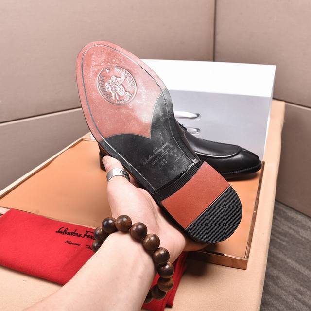 专柜品质顶级代购菲拉格慕爆款!2024男士正装皮鞋!纯正高品质可1:1比较!面料:意大利进口原版定制开边珠牛皮!内里:全进...
