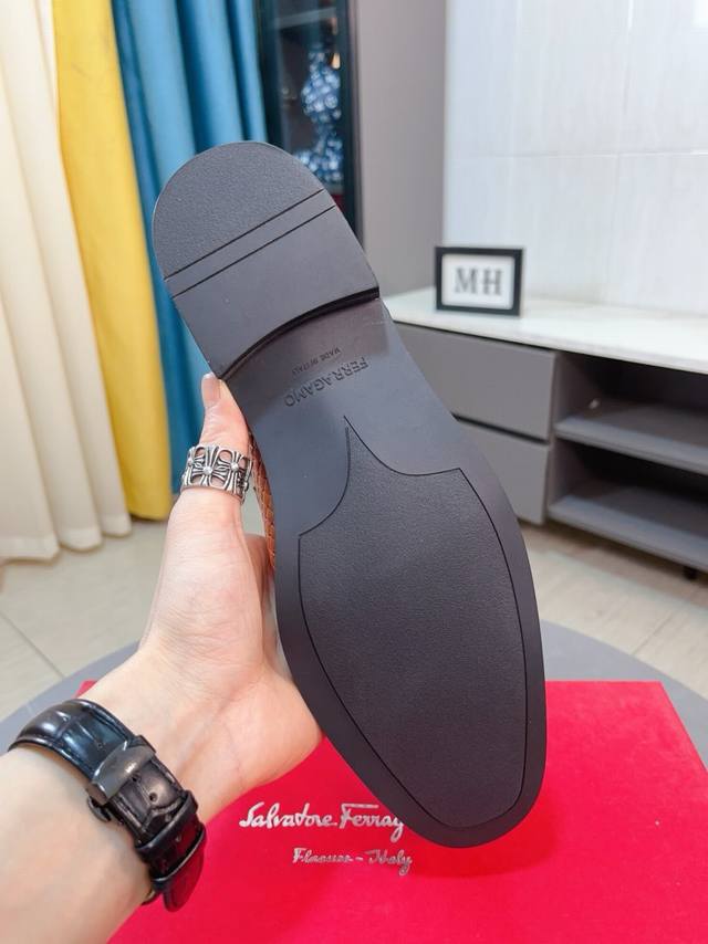 出厂价 牛里 Ferragamo 菲拉格慕最新男士商务皮鞋官网原版1:1开模头层采用意大利进口牛皮奢华牛皮内里,柔软舒适高端大气,高品味男士首选38-44 45